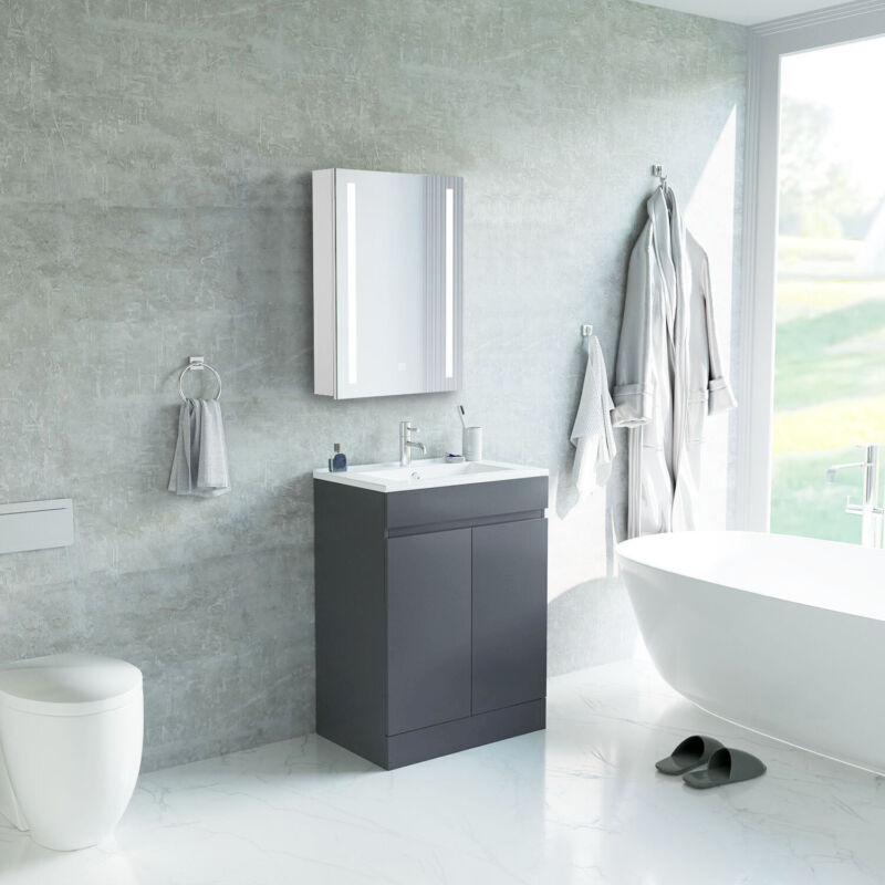 Bathroom Mirror Cabinet 500x700mm with LED Light Demister Shaver Socket