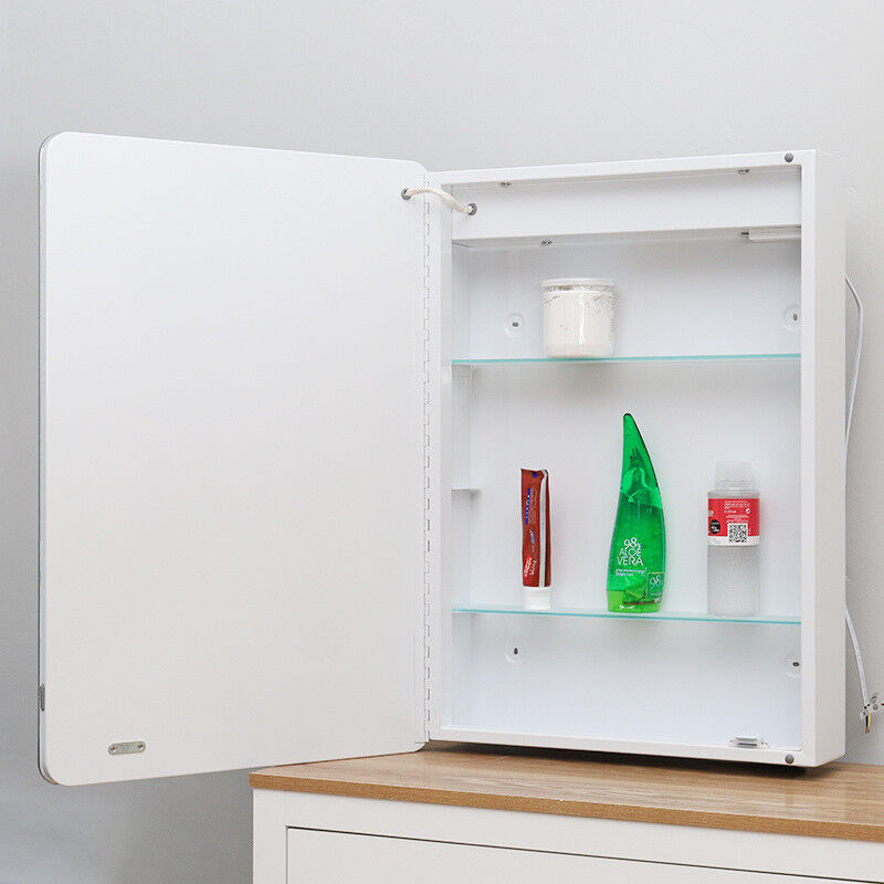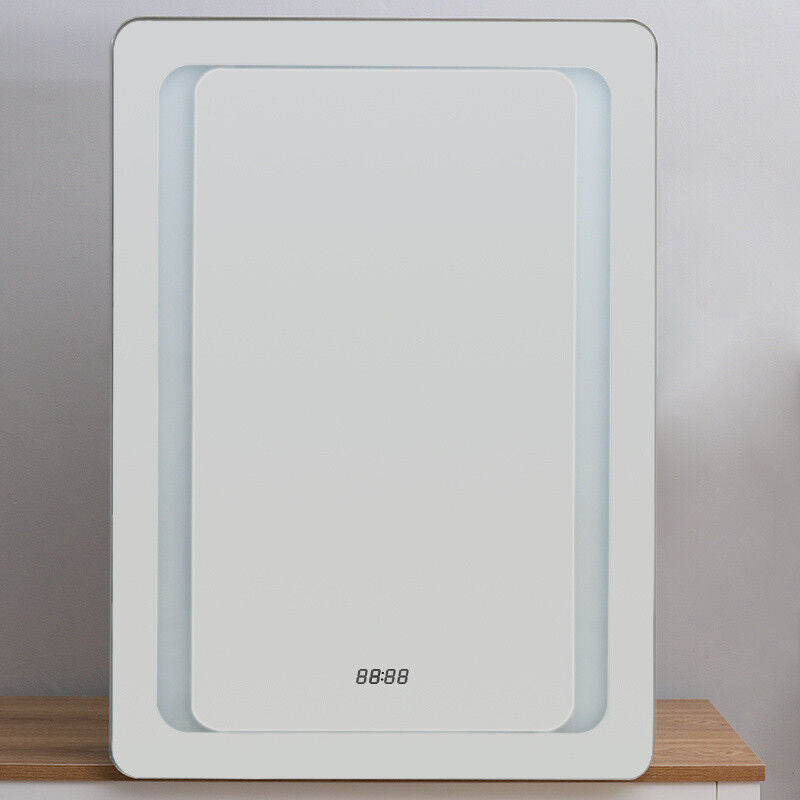 Bathroom Mirror Cabinet Shaver Socket Sensor Demister Pad Clock With LED Lights