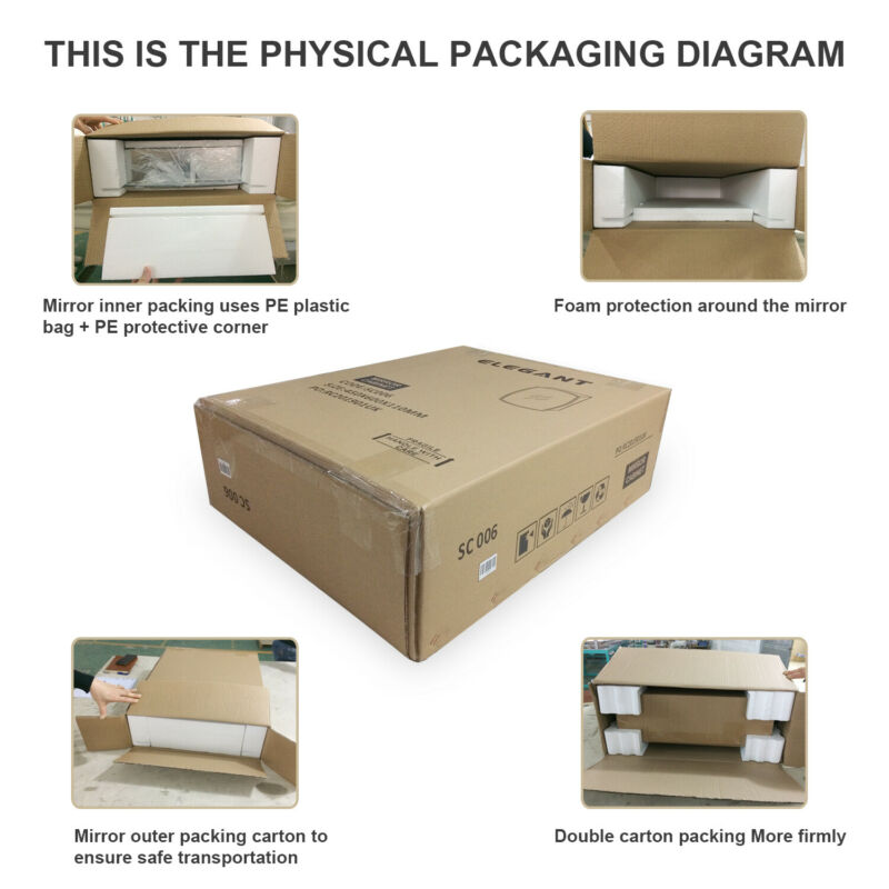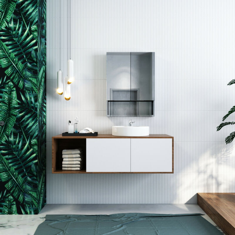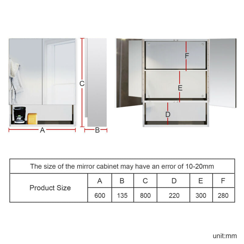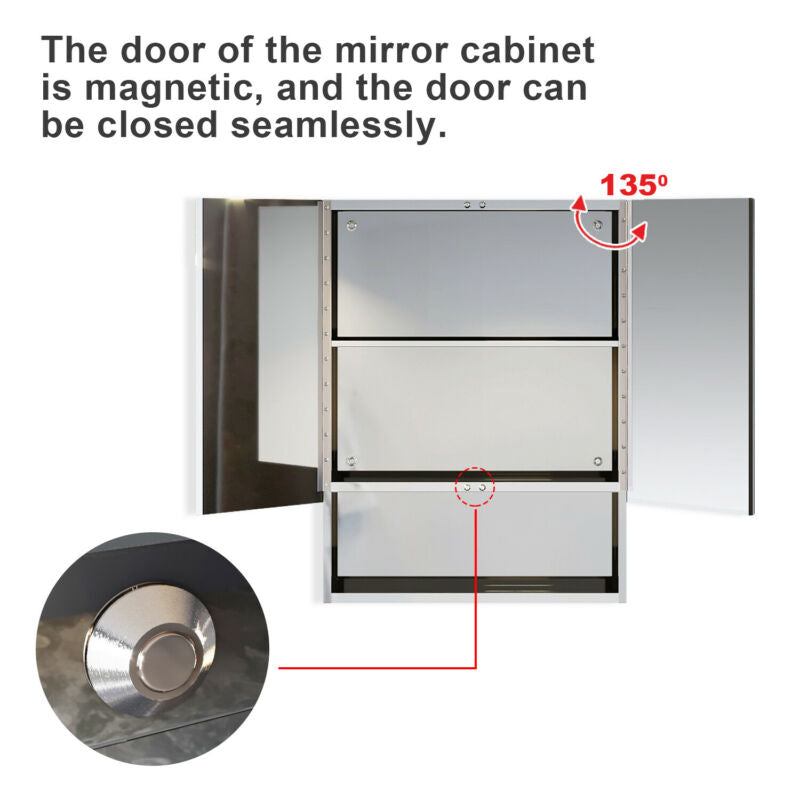 Bathroom Mirror Cabinet Storage with Shelf Cupboard Modern Stainless Steel Wall