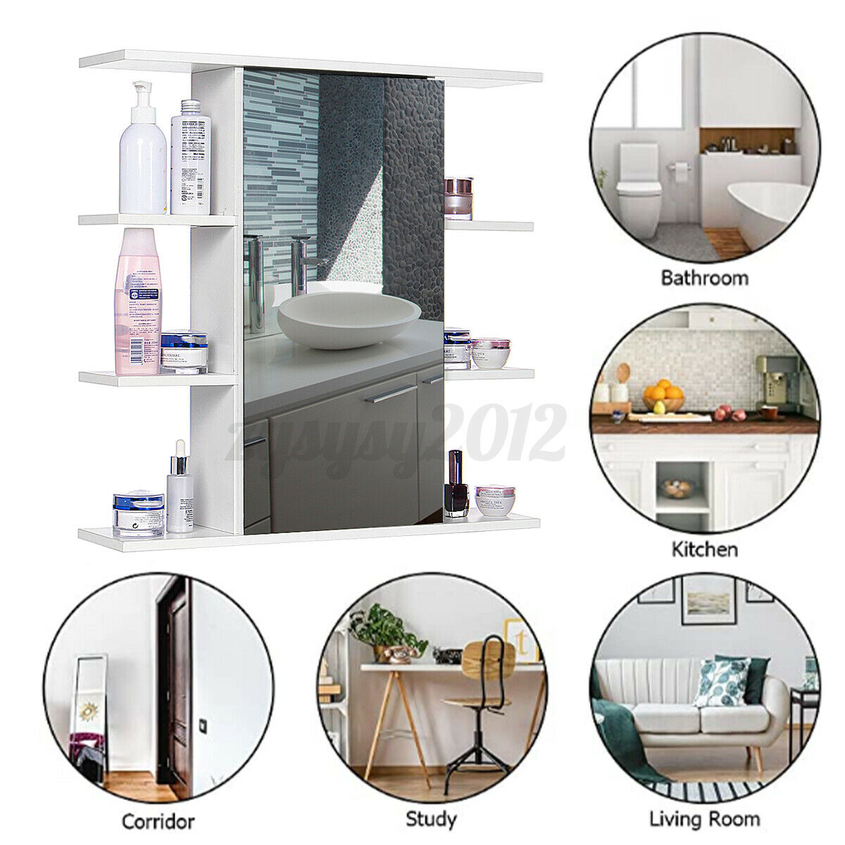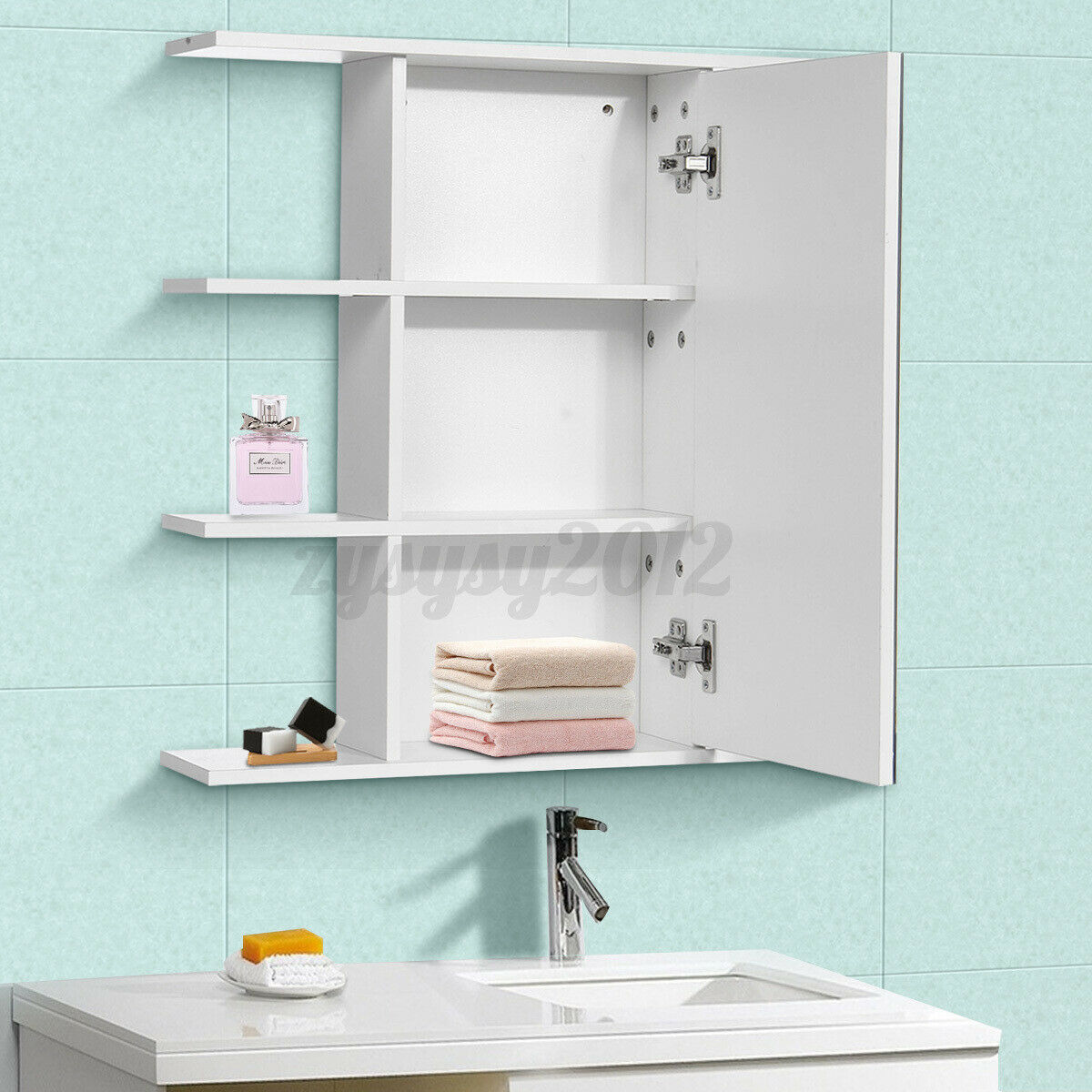 Bathroom Mirror Cabinet Vanity Medicine Storage Makeup Wall Cupboard Shelf White