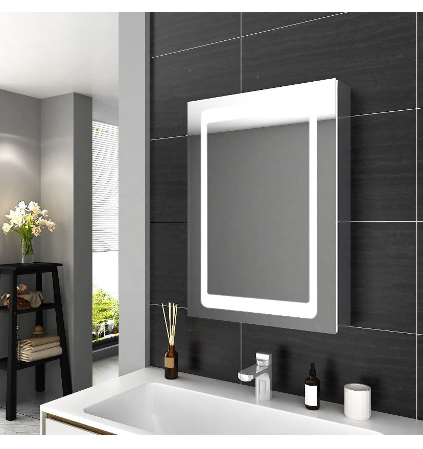Bathroom Mirror Cabinet With LED Shaver Socket Demister Illuminated 600/700mm UK
