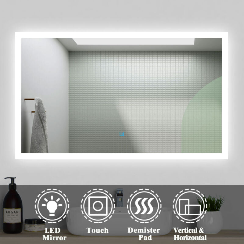 Bathroom Mirror with LED Light/Demister/Touch Switch/Illuminated/Light up/IP44
