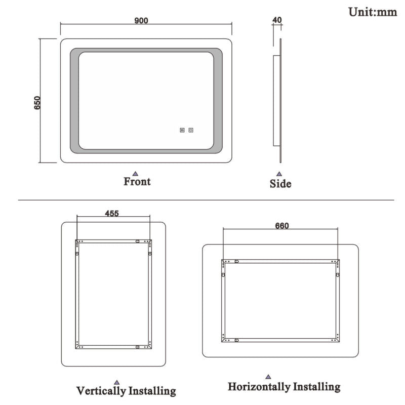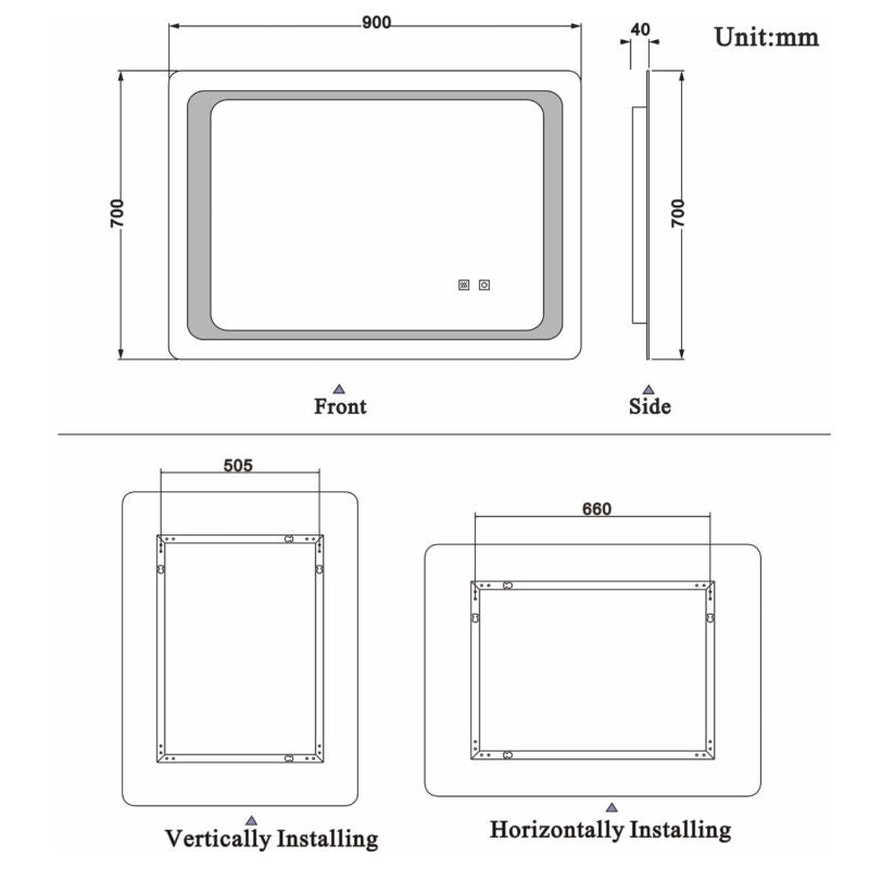 Features Fogless, Heated, LED Lighted, Lighted, Touch Sensor, Demister Pad, Dual Touch, Energy-saving