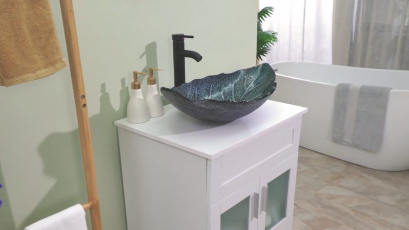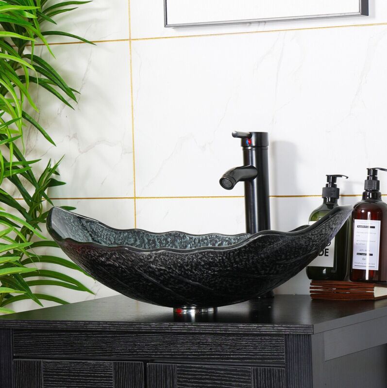 Bathroom Sink Basin Artistic Wash Bowl Countertop Tempered Glass Tap Waste Set