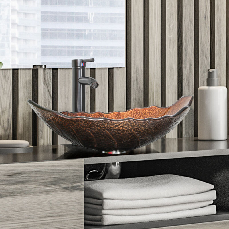 Bathroom Sink Basin Artistic Wash Bowl Countertop Tempered Glass Tap Waste Set