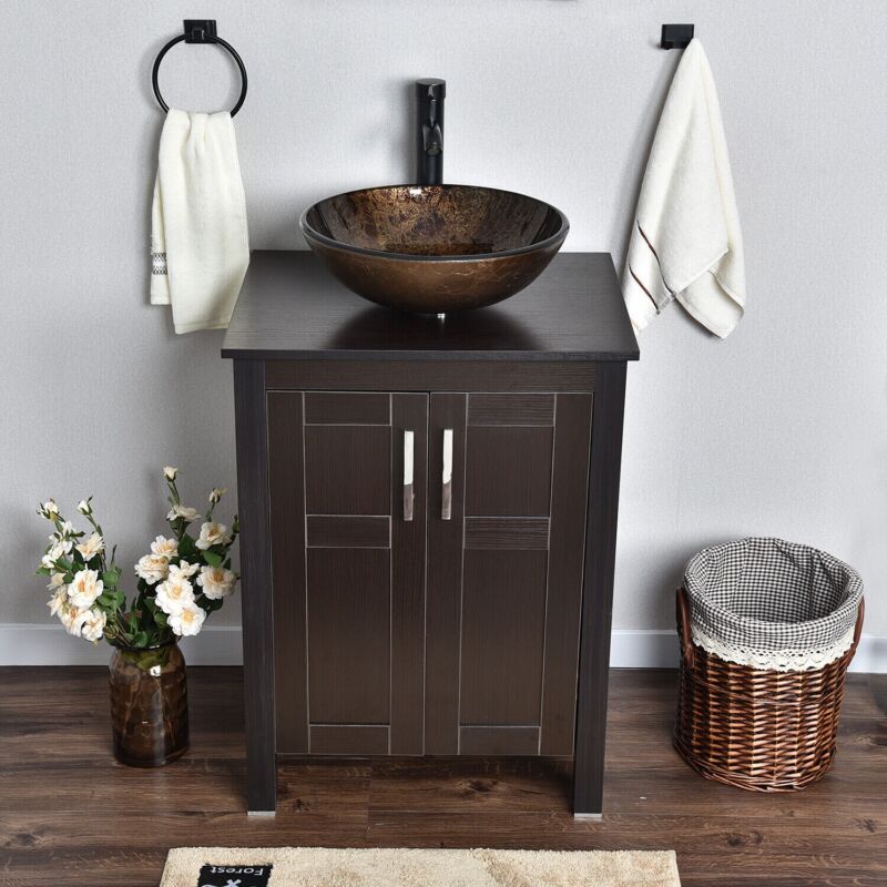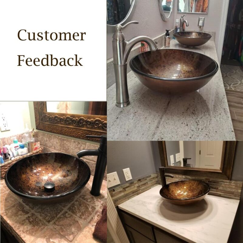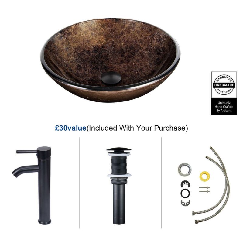 Bathroom Sink Bowl Wash Basin Countertop Tempered Glass Tap Waste Set Round