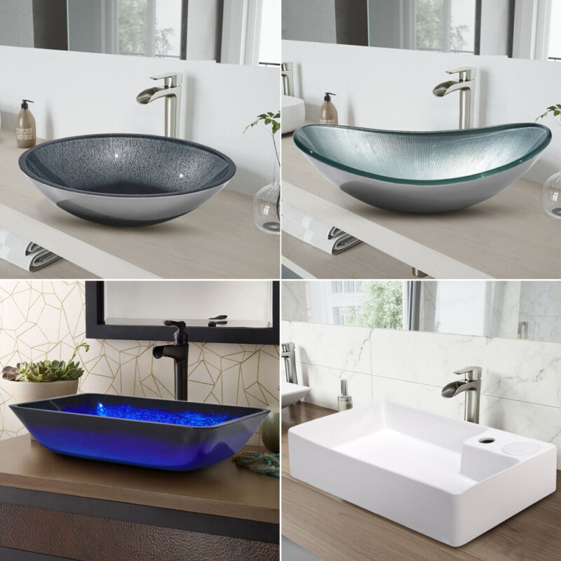 Modern Wash Basin in Ceramic OR Tempered Glass Bathroom Washing Bowl Pop Up Drain