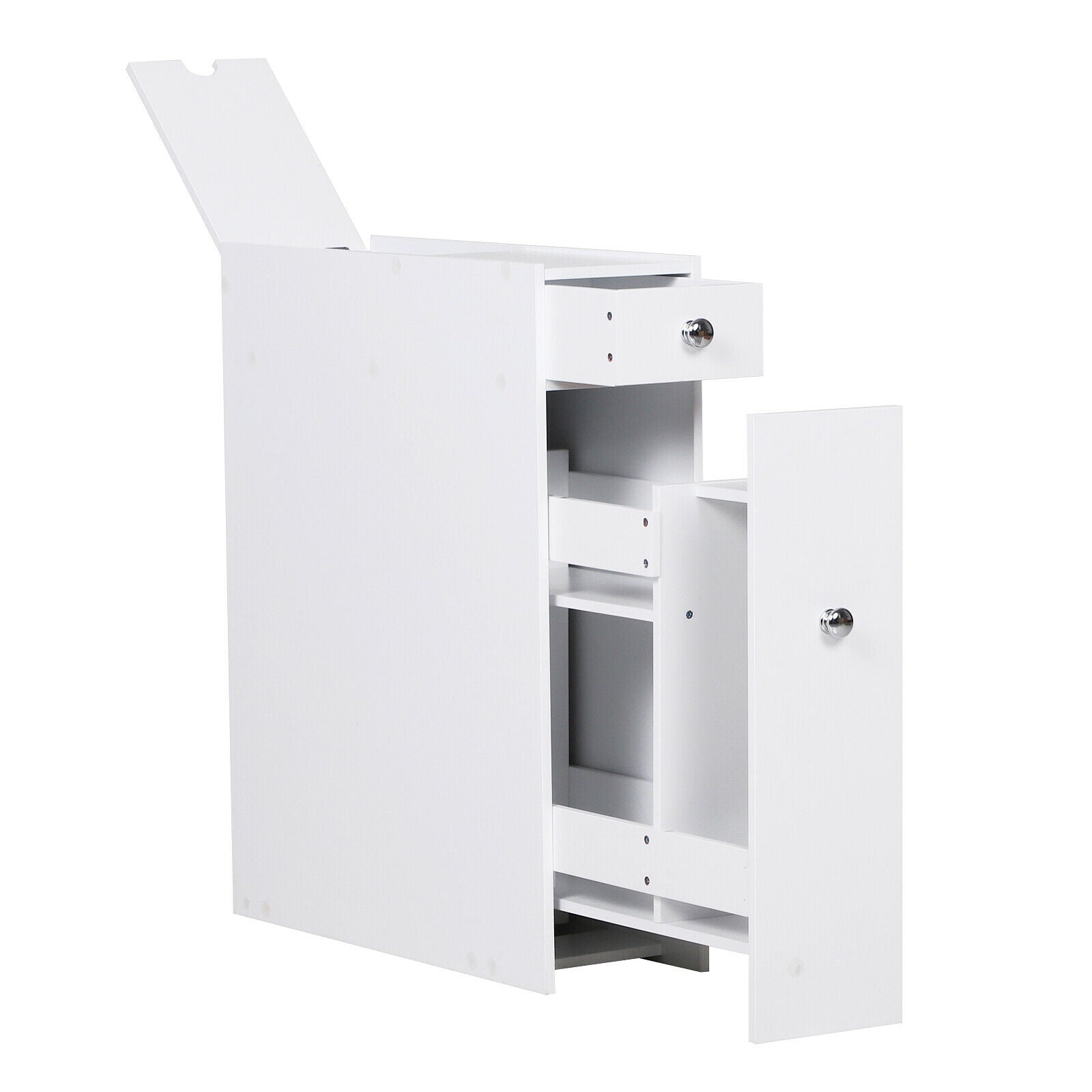 Bathroom Slim Floor Cabinet Narrow Wooden Storage Cupboard Toilet with Drawers