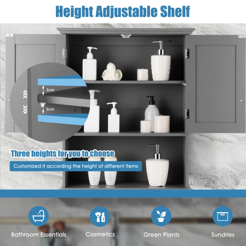 Bathroom Storage Cabinet Wall Mounted Vanity Storage Cupboard w/Adjustable Shelf