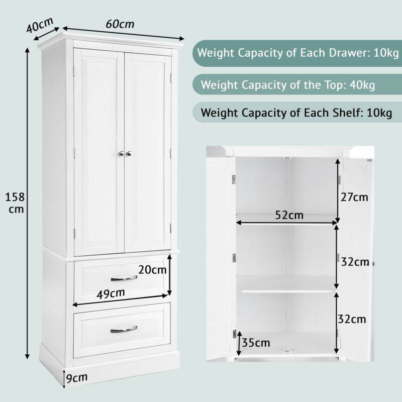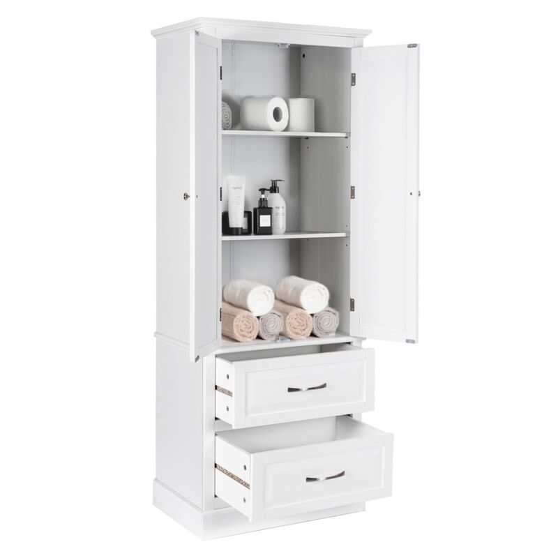 Bathroom Tall Cabinet Freestanding Storage Organizer Cupboard W/ 2 Large Drawers