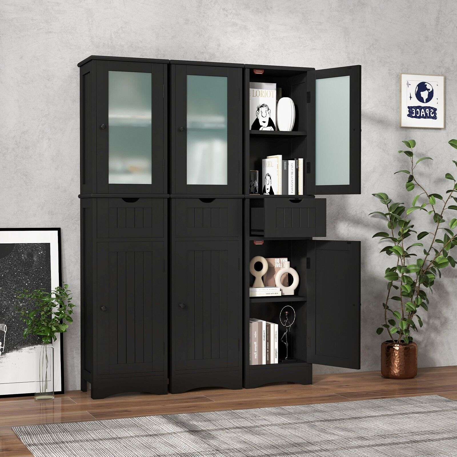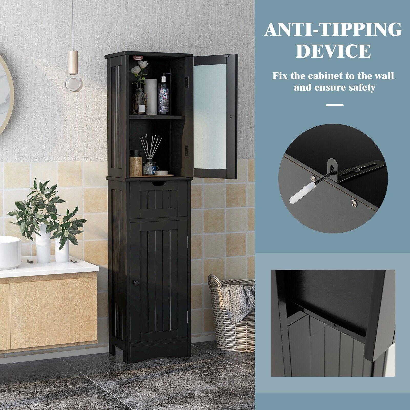 Bathroom Tall Cabinet Slim Freestanding Storage Organizer Cupboard 2 Doors
