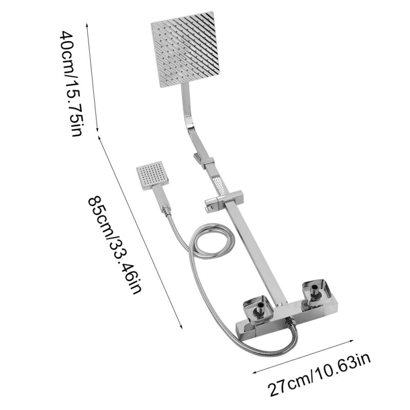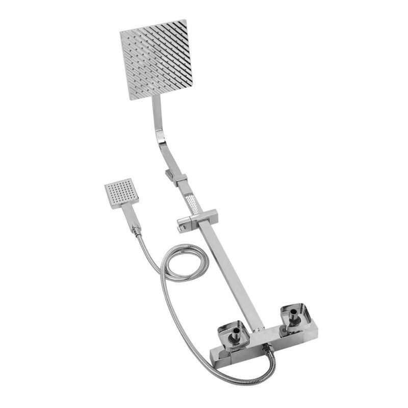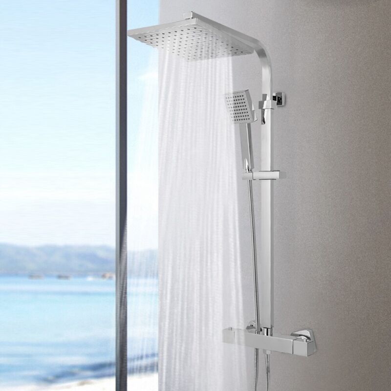 Bathroom Thermostatic Exposed Shower Mixer Twin head Large Square Bar Set Chrome