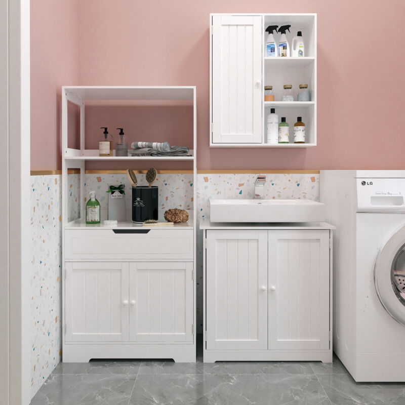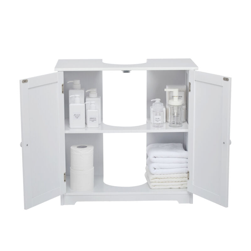 Bathroom Under Sink Cabinet Storage Unit Cupboard White MDF 2 Doors w/ Shelves