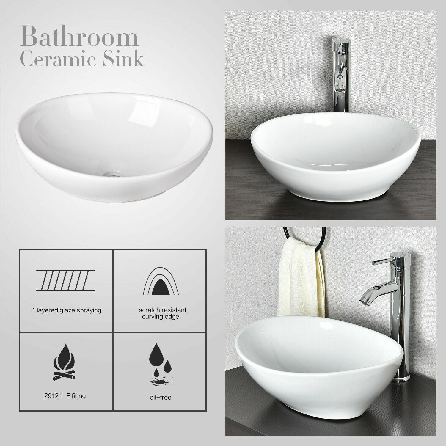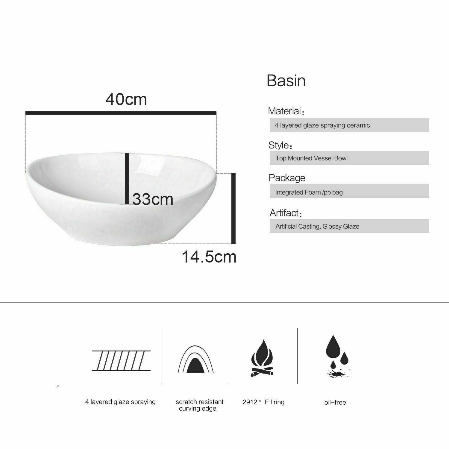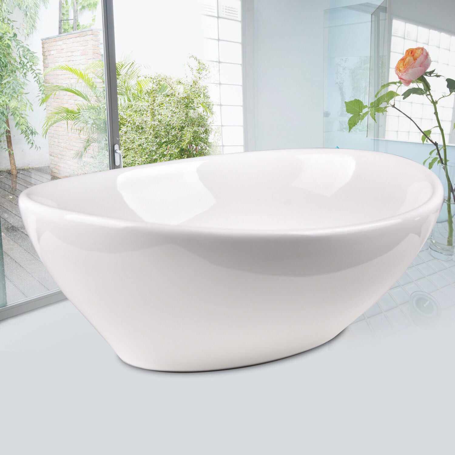 Bathroom Vanity Wash Basin Sink Countertop Oval Ceramic Wash Bowl 400 x 330 UK