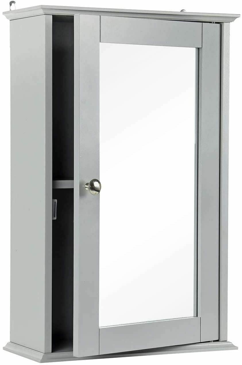 Bathroom Wall Cabinet Single Mirror Door Cupboard Grey Wood