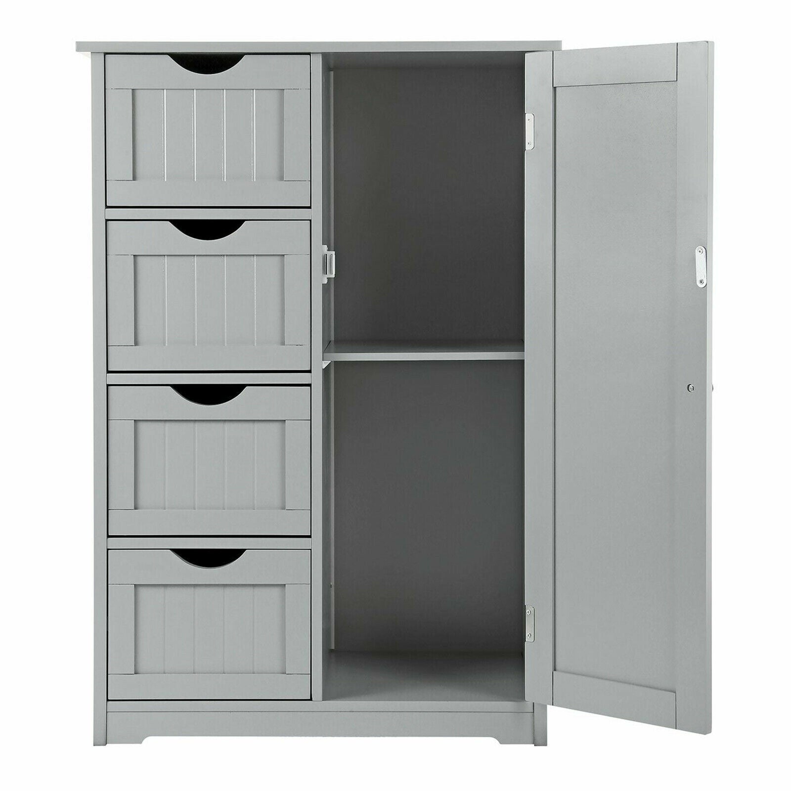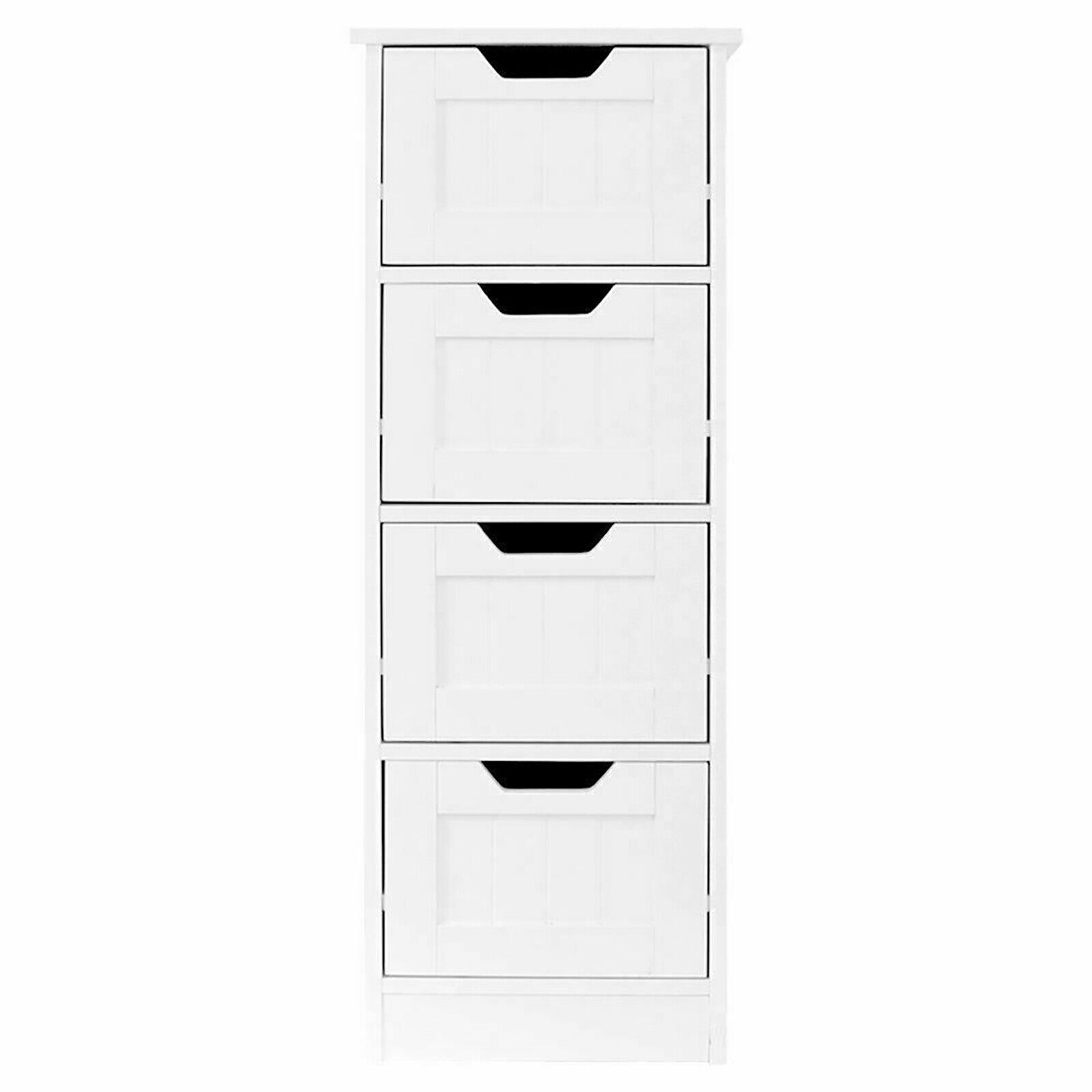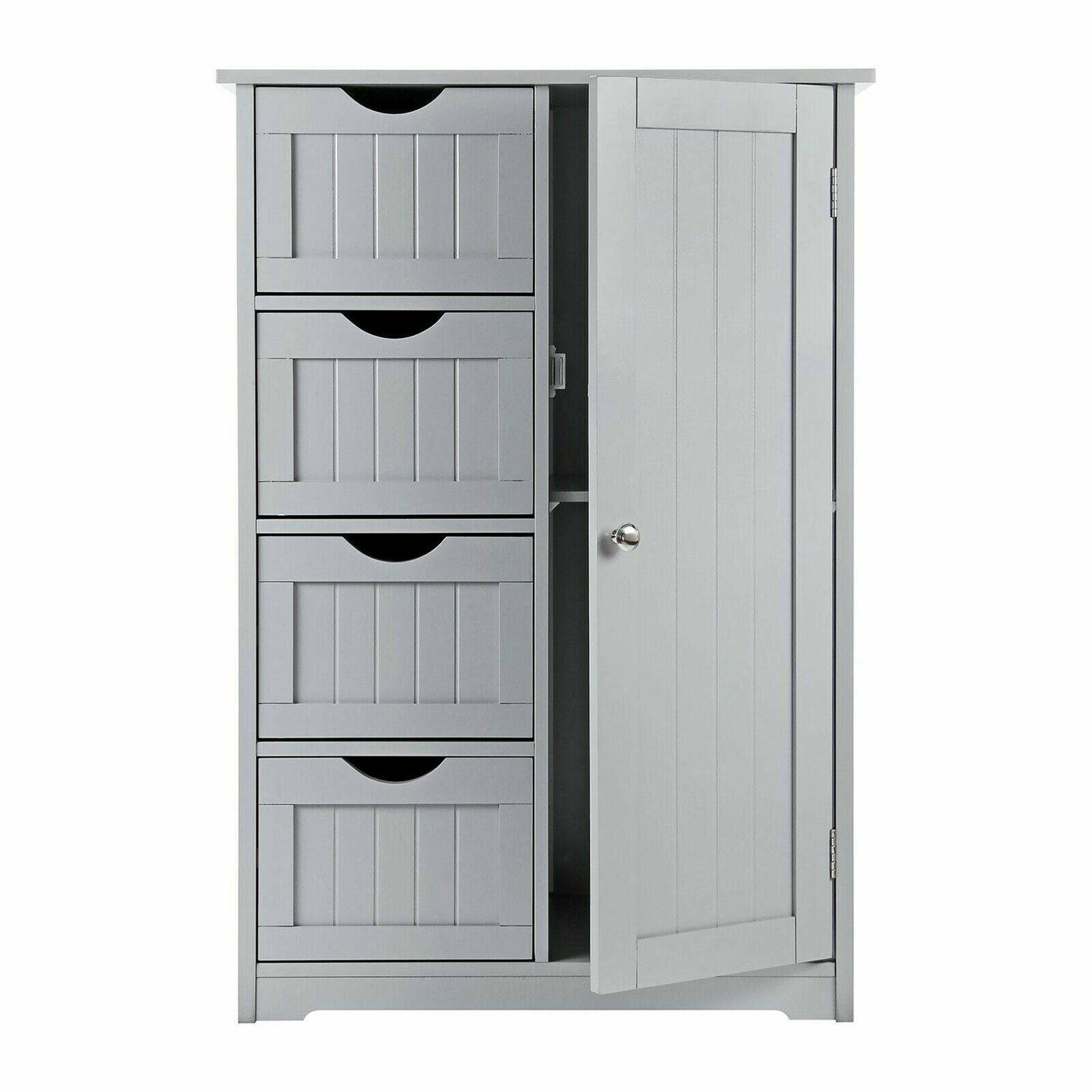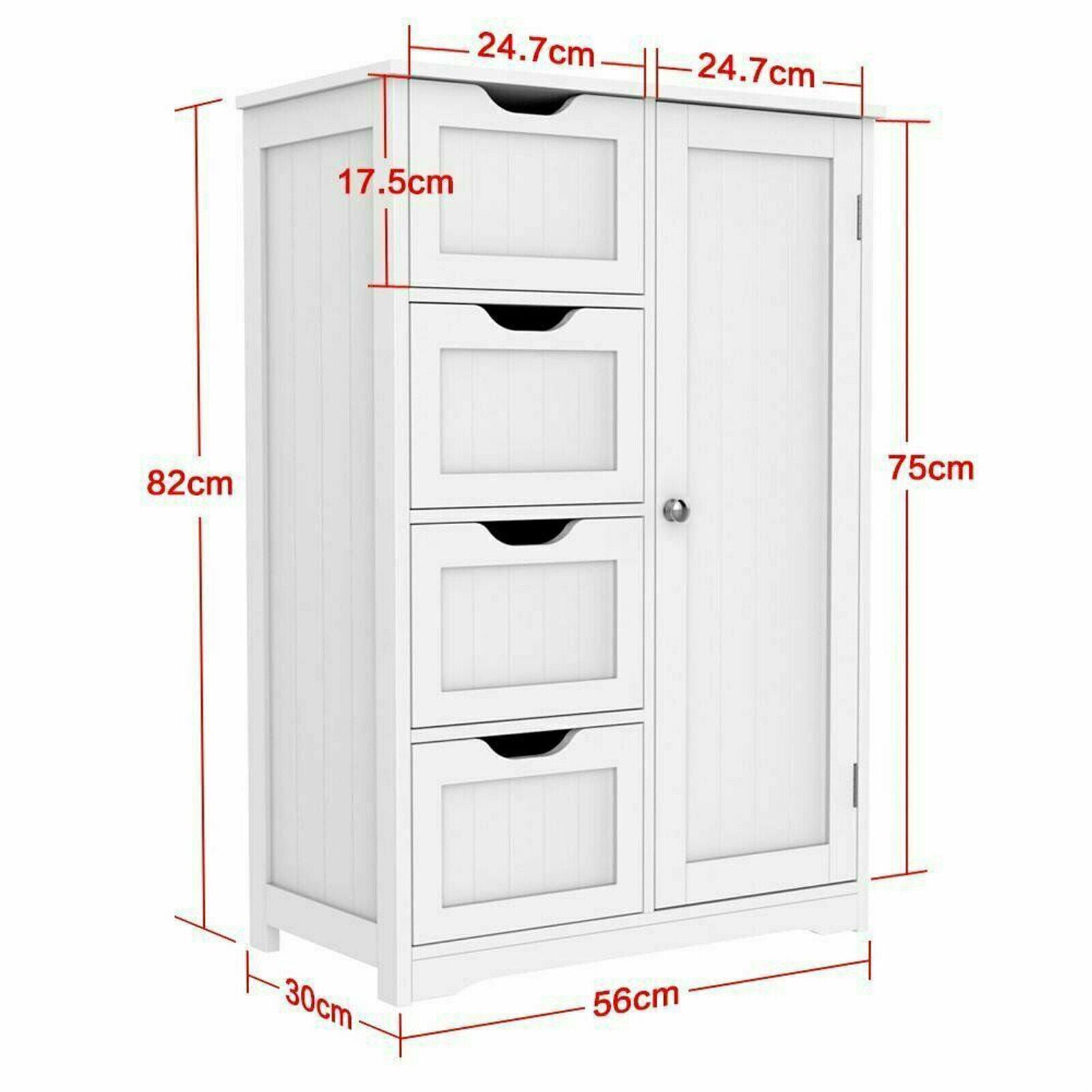 Bathroom Wood Cabinet Storage 4 Drawer 1 Door Free Standing Cupboard Unit White