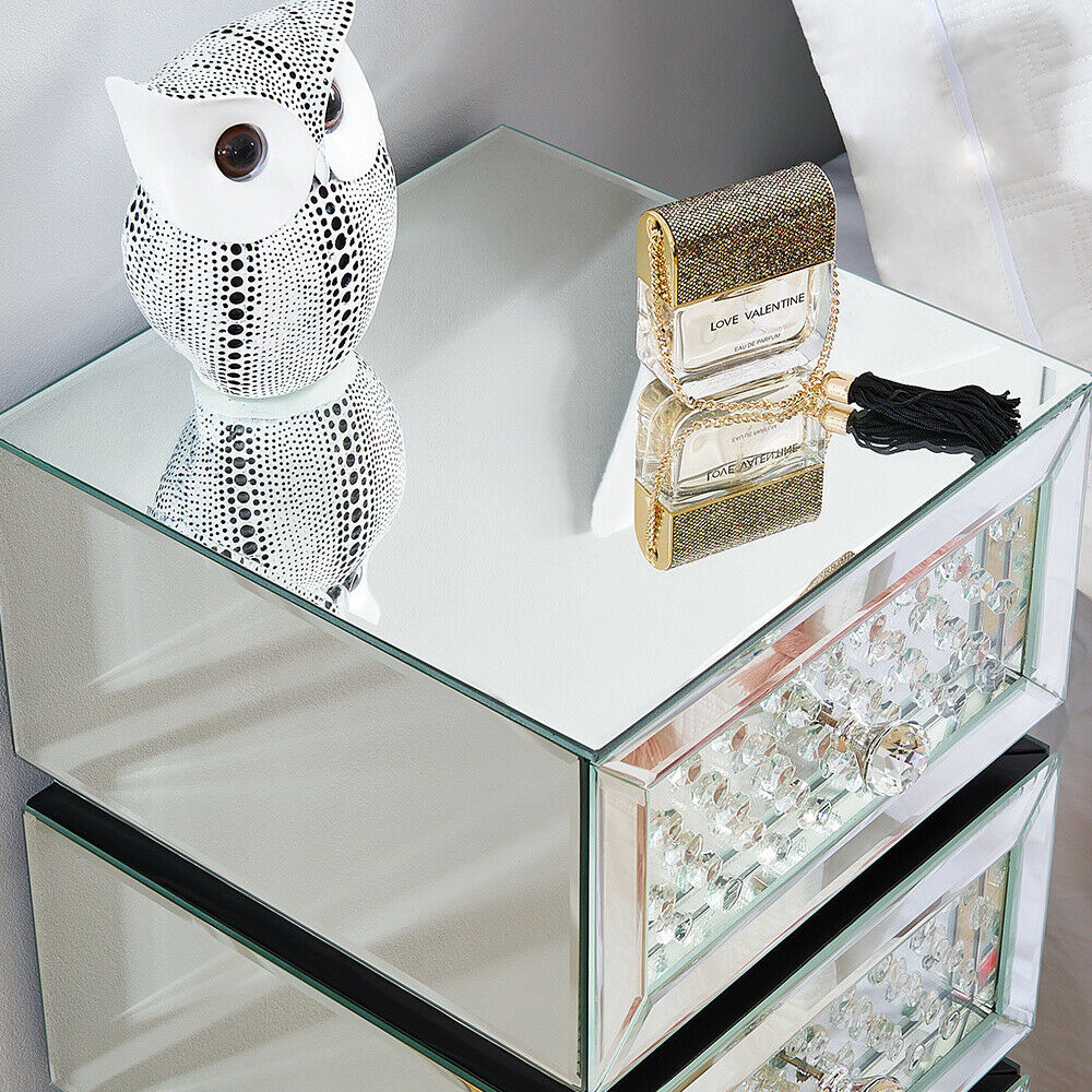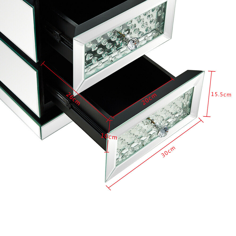 Bedroom Luxury Mirrored Bedside Table Nightstand Unit Cabinet Chest of 3 Drawers