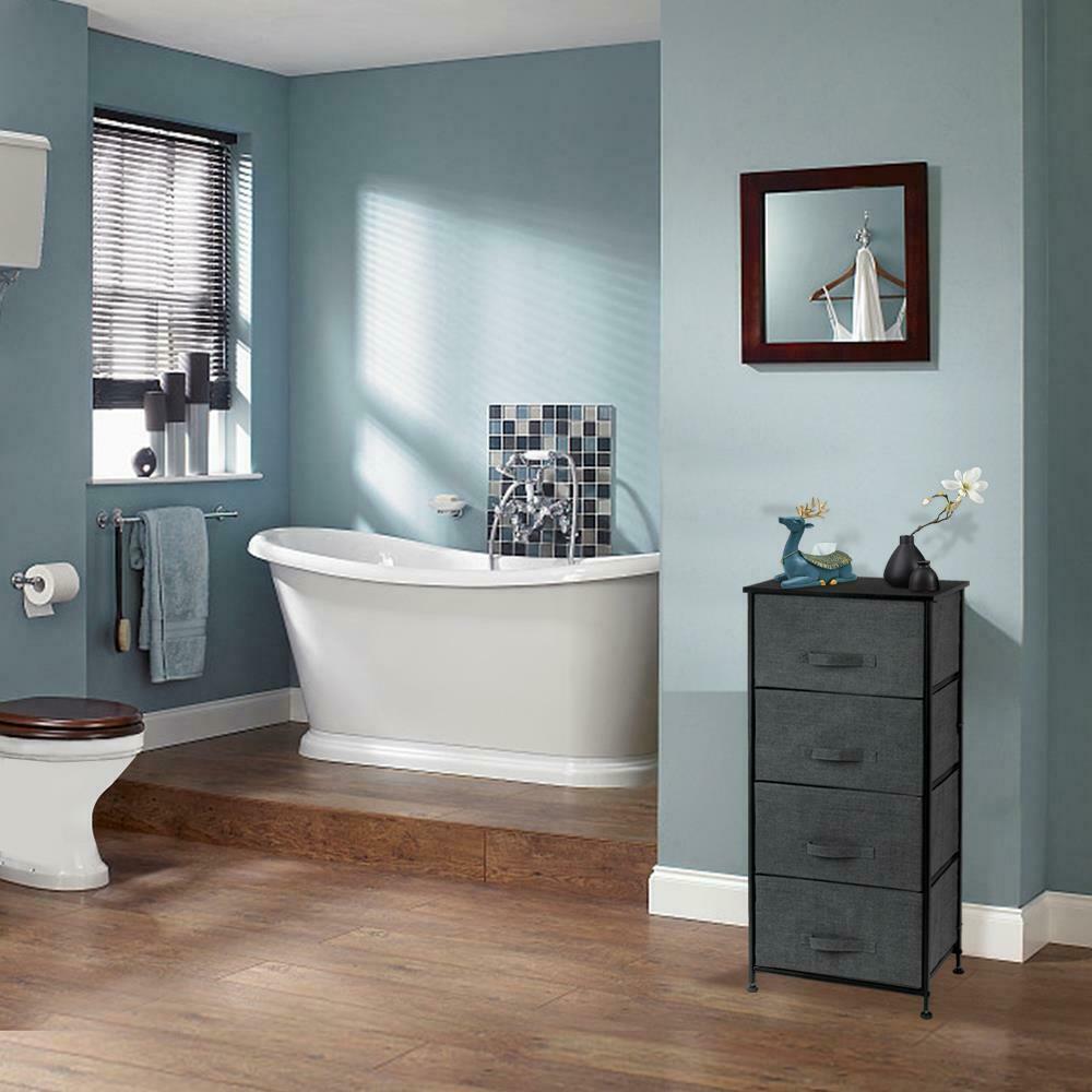 Bedside Storage Cabinet Drawers Fabric Metal Frame Sofa Side Bedroom Nightstand