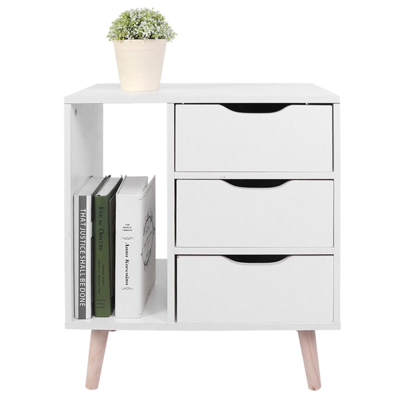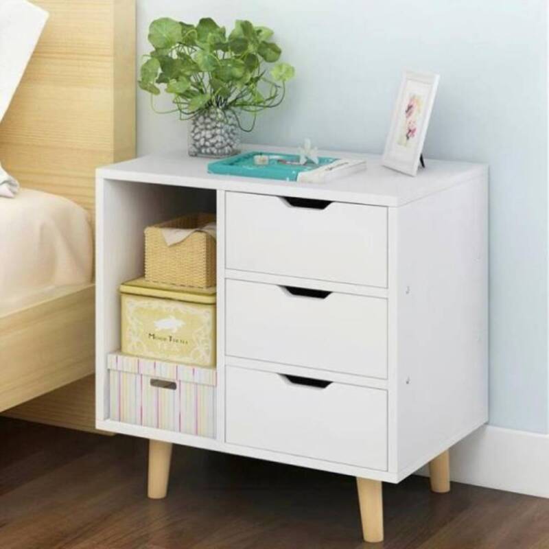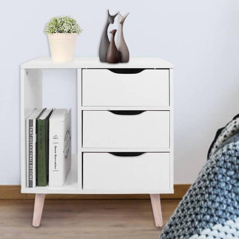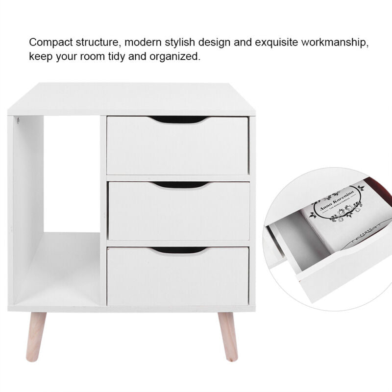 Bedside Table Cabinet Small Side End Table Nightstand 3 Drawers Storage Organize