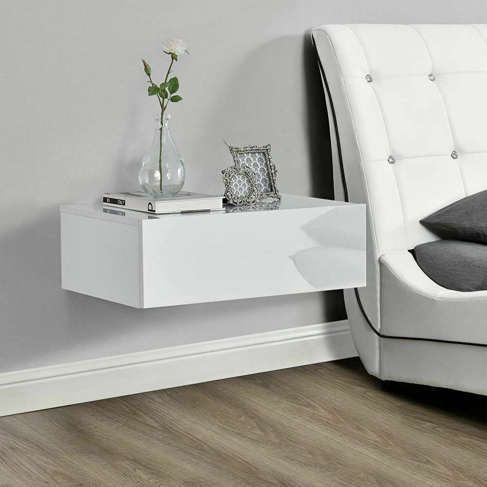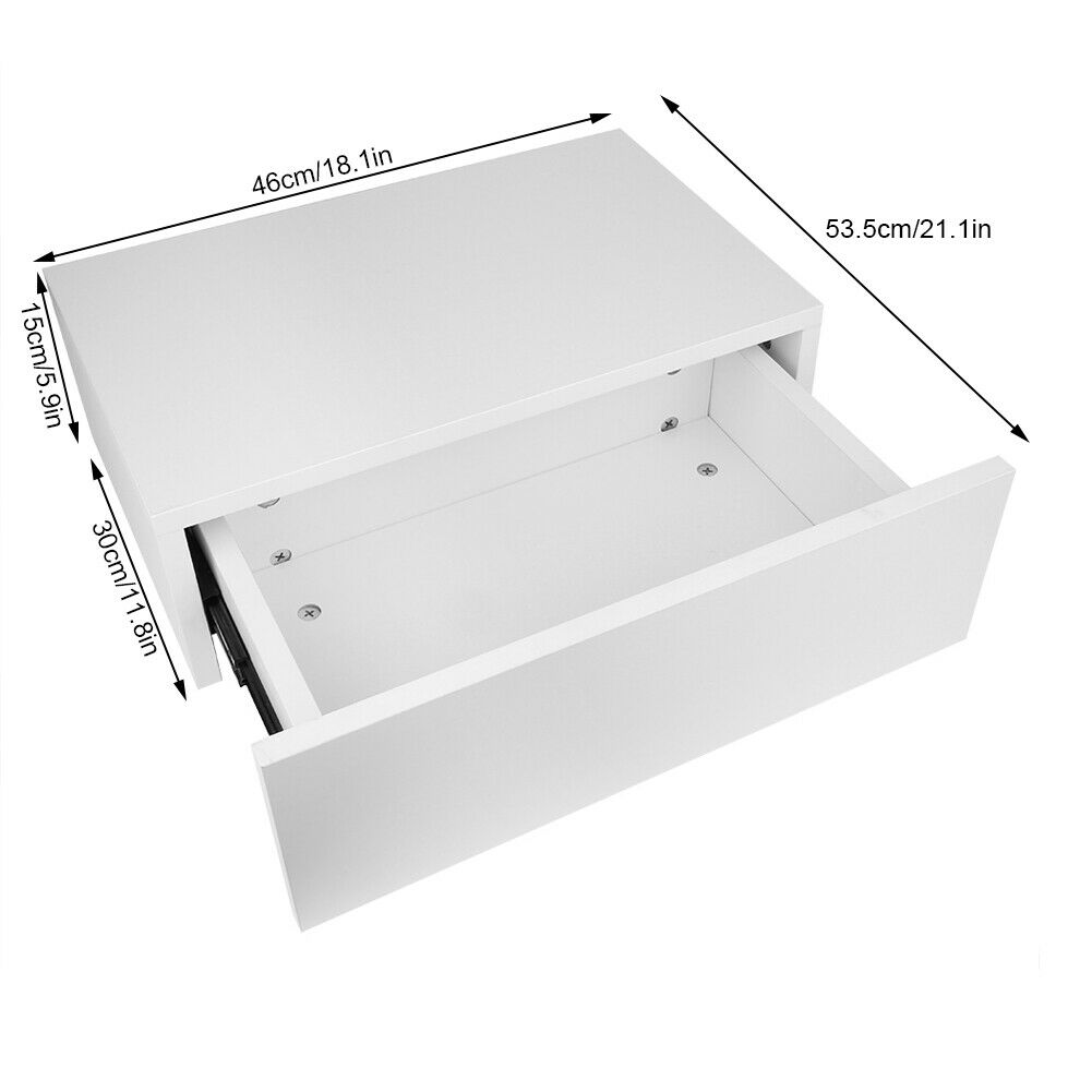 Bedside Table Floating Nightstand Wall-Mounted Shelf with Drawer White Wooden