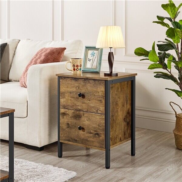 Bedside Table,Metal-Framed Storage Table with 2 Drawers for Bedroom/Living Room