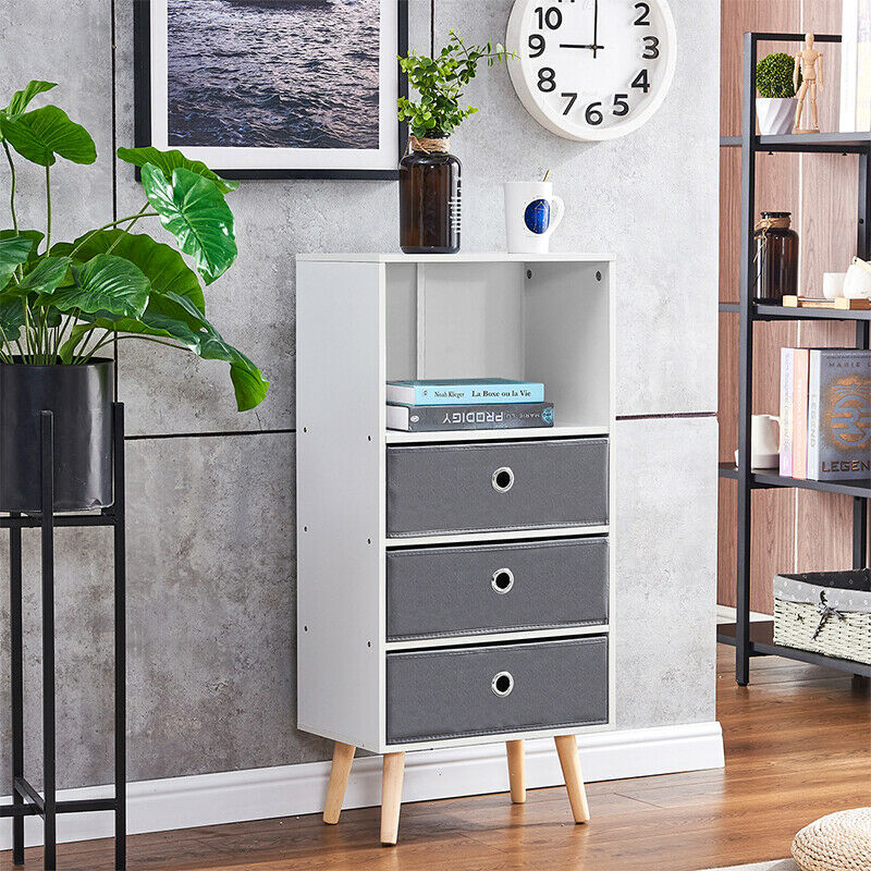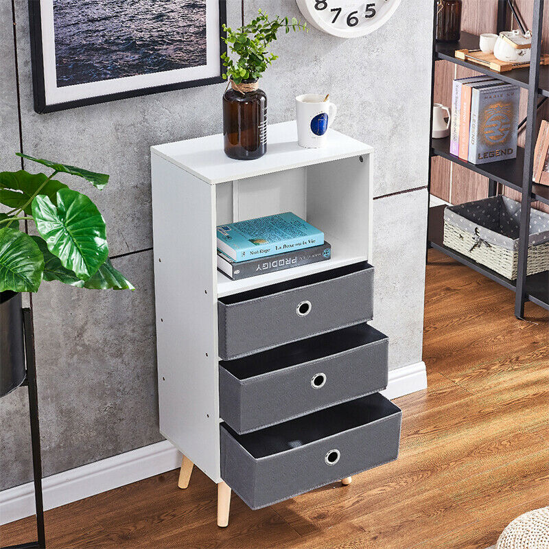 Bedside Table Night Stand Storage Bookcase Chest w/ 4 shelf Bedroom Furniture BN
