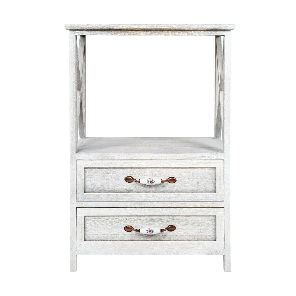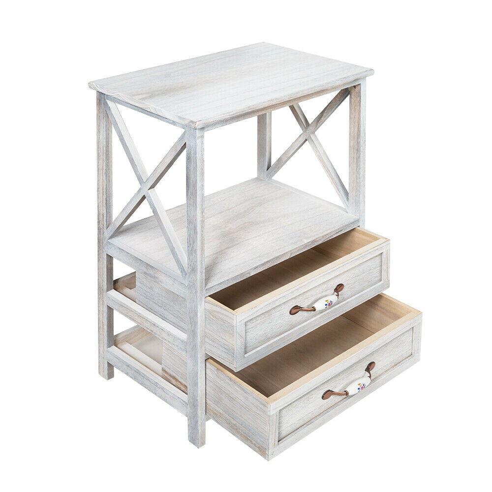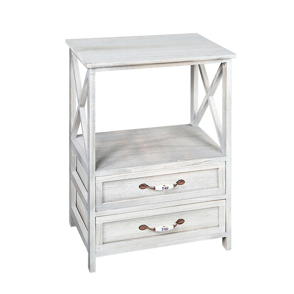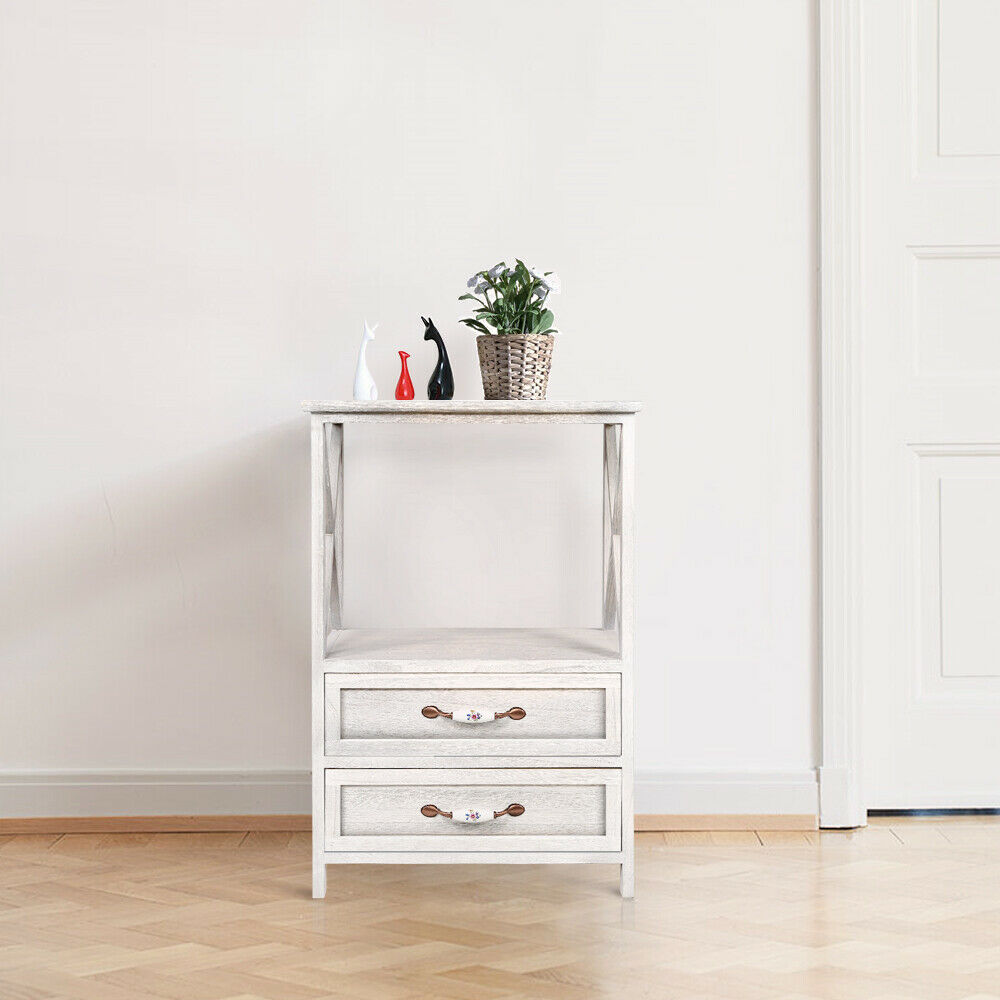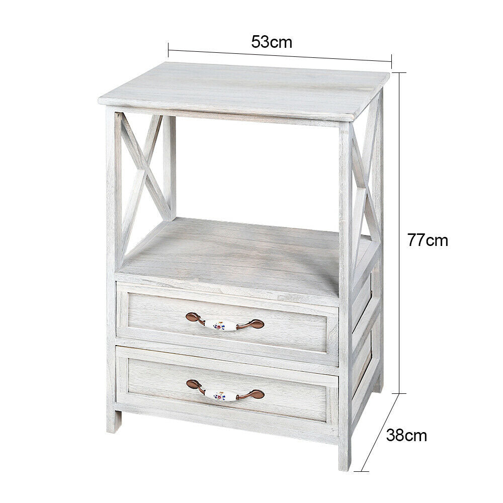 Bedside Table Sofa Side Table Nightstand Storage Cabinet with 2 Drawers Home BN