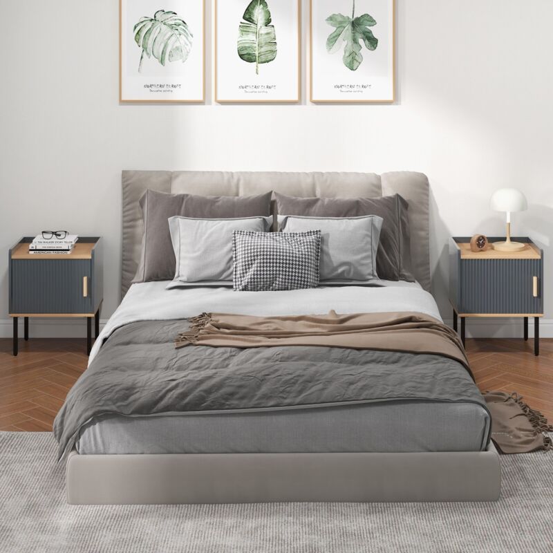 Bedside Table Wooden Nightstand Modern End Table Storage Cabinet W/ Door Cabinet