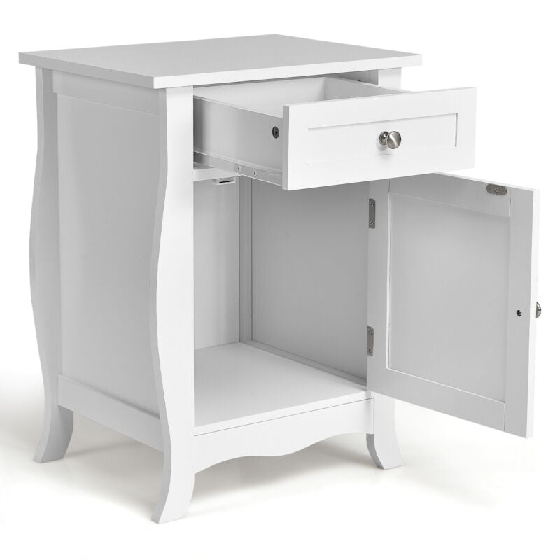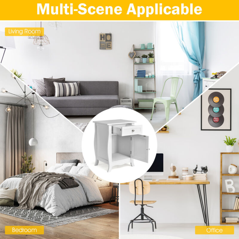 Bedside Table Wooden Nightstand Sofa Side Table w/Drawer & Door Cabinet Modern