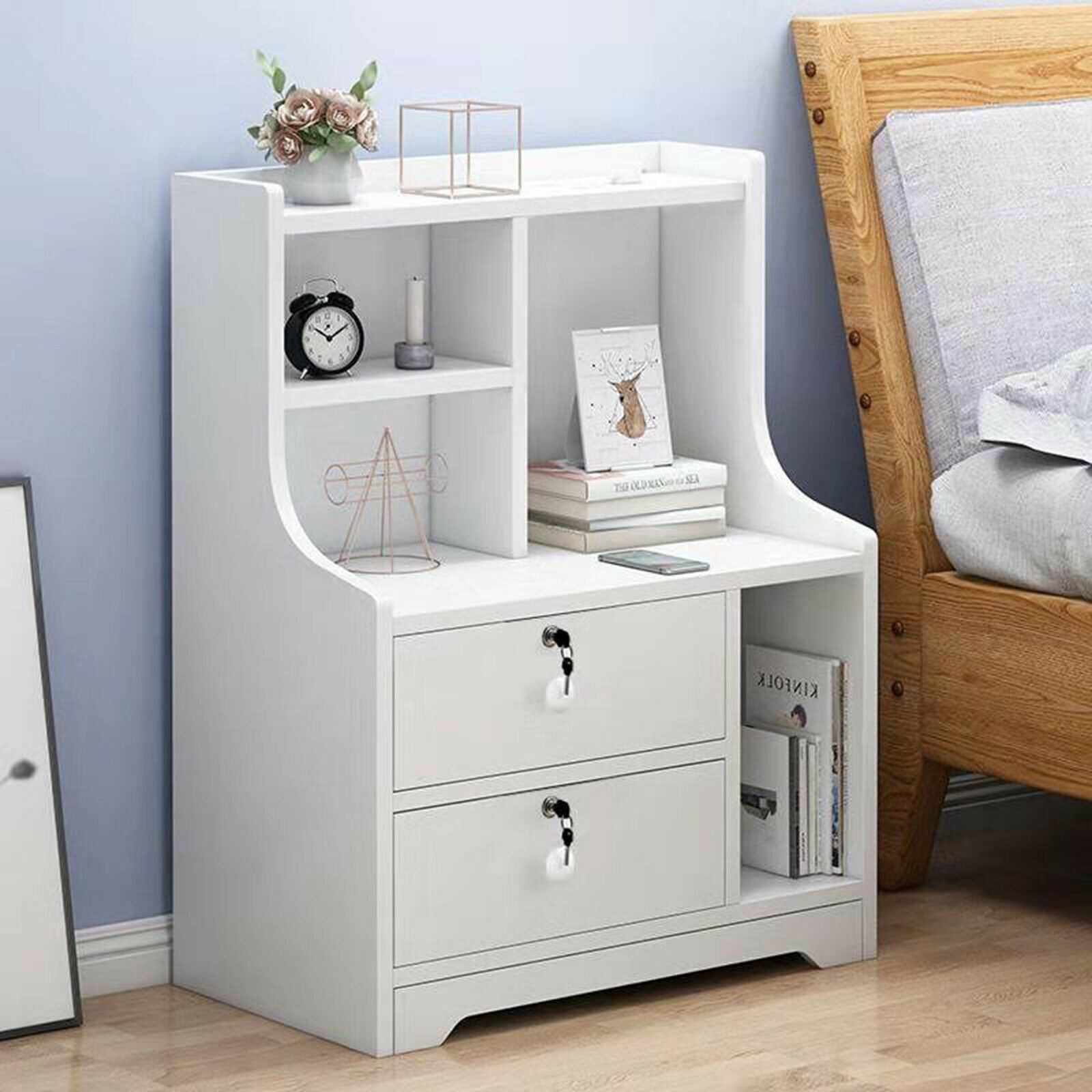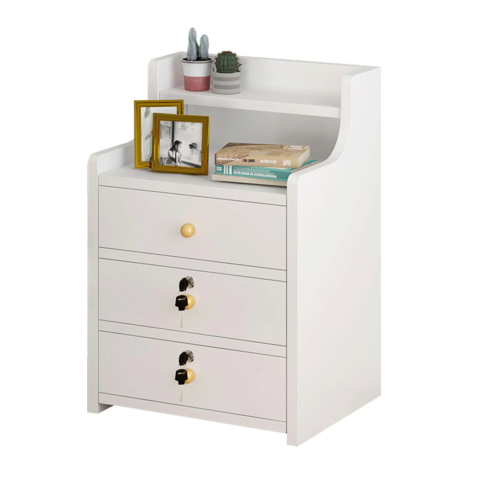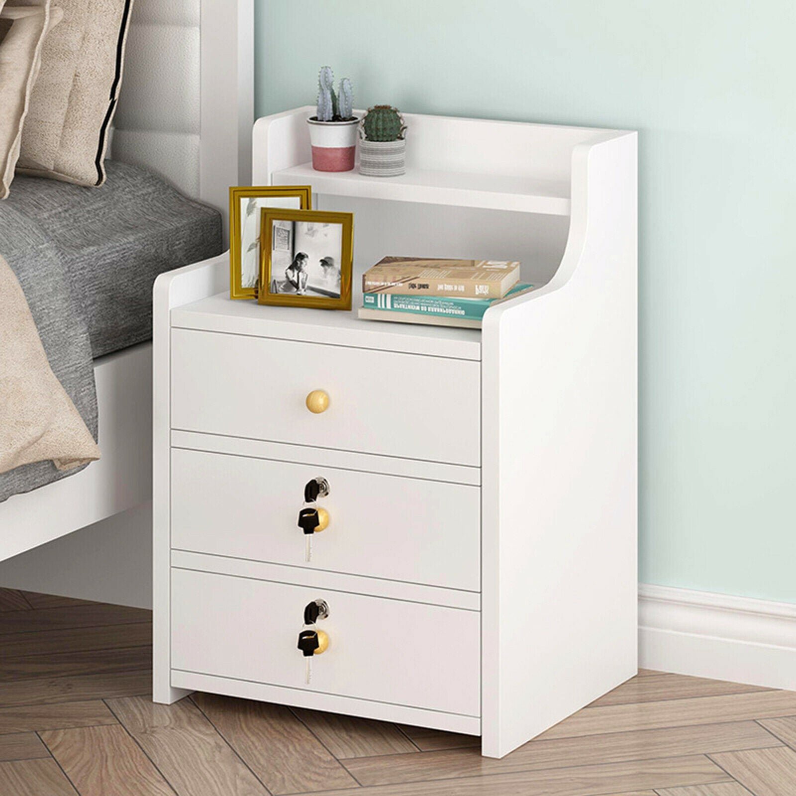 Bedside Tables Nightstand Cabinet Chest Storage With Lock key 3 Drawer Bedroom
