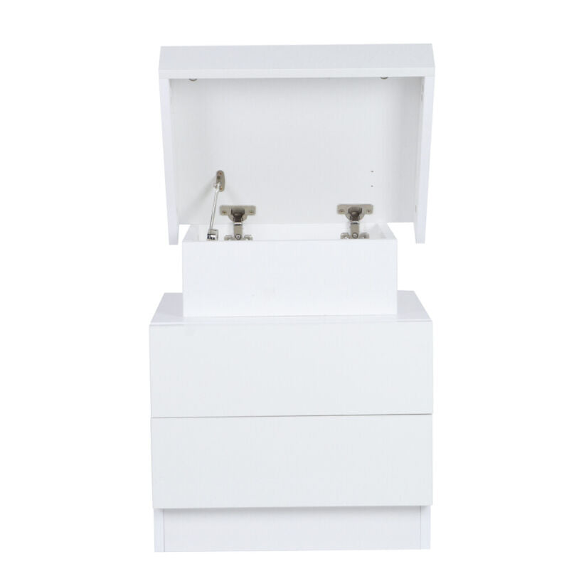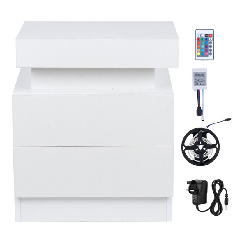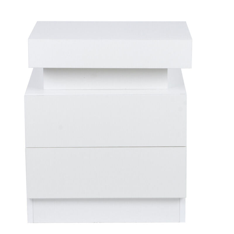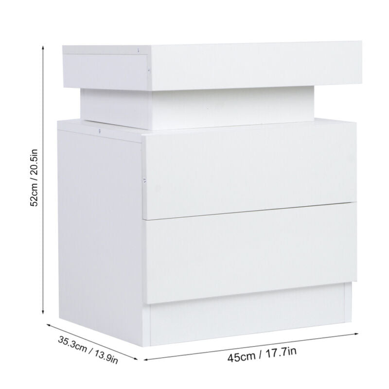 Bedside Tables Storage Cabinet w/ 2 Drawer Bedroom Storage & Coloful LED