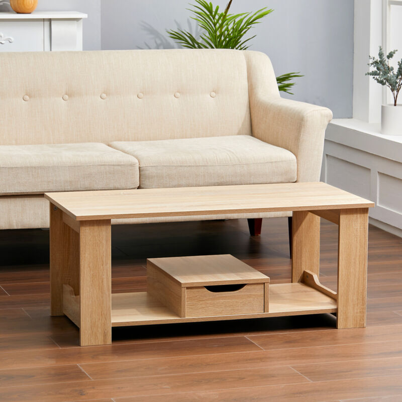 Beech Wooden 2 Tier Coffee Table Sofa Lounge Tea Table Livingroom with Drawer UK