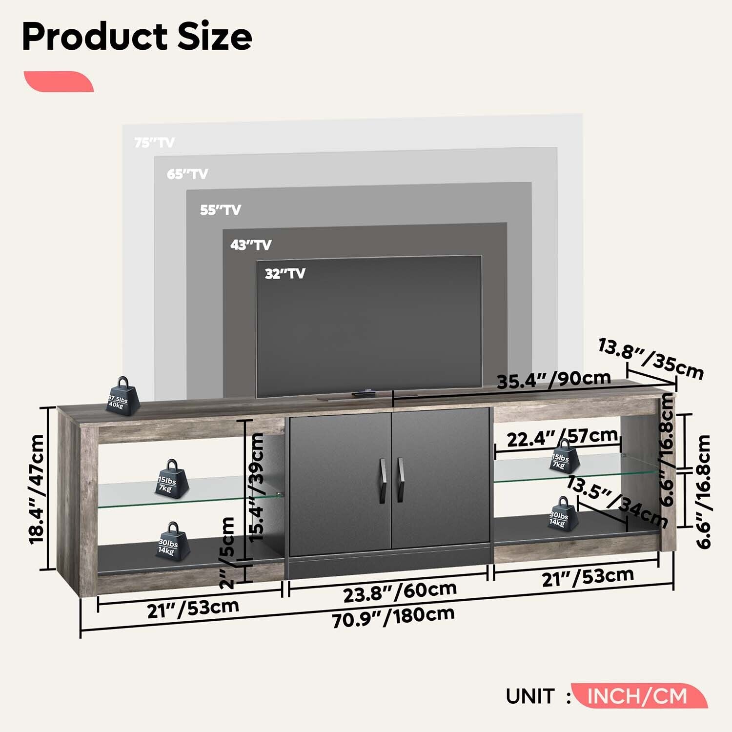 TV Stand Unit Cabinet LED Shelves Media Console Home Furniture for 75"