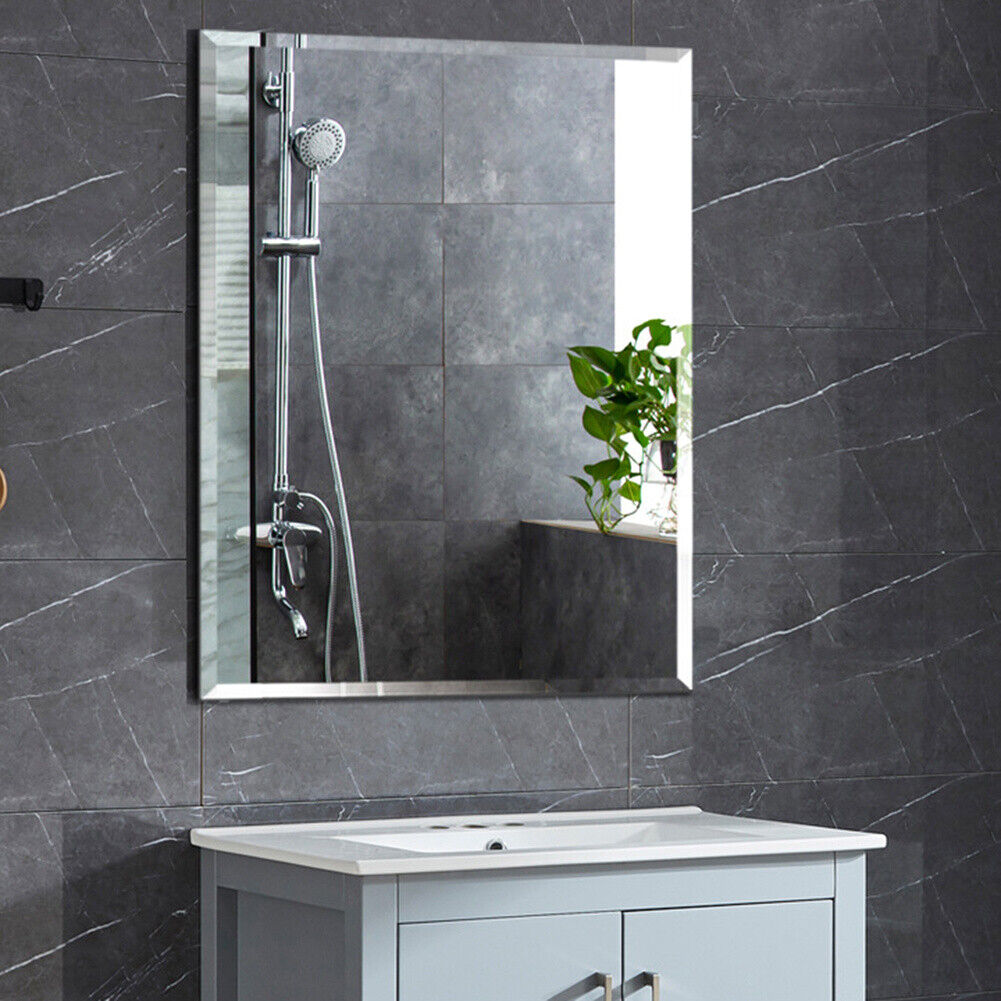 Bevelled Frameless Glass Bathroom Mirror Vanity Shower Mirror Wall Adhesive on