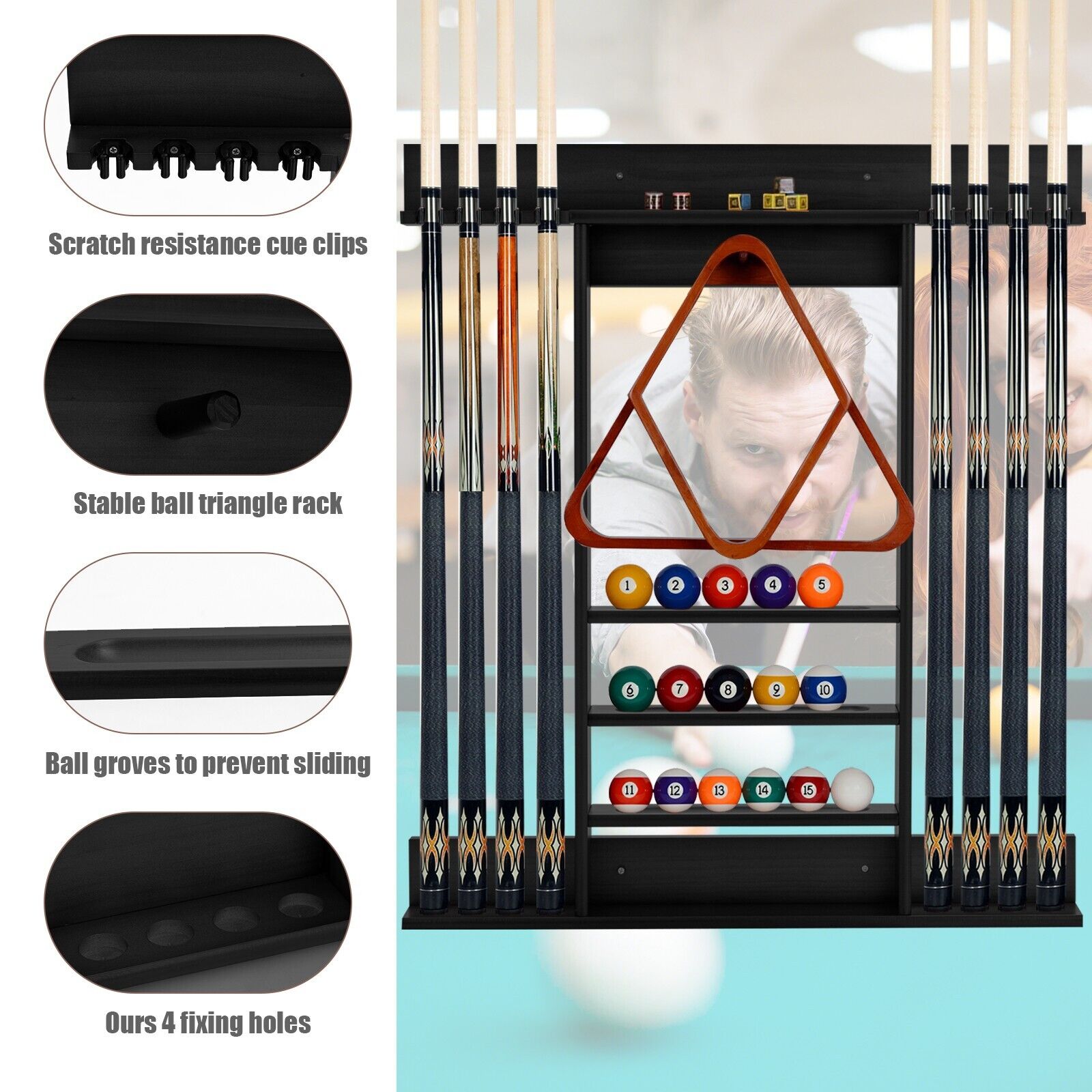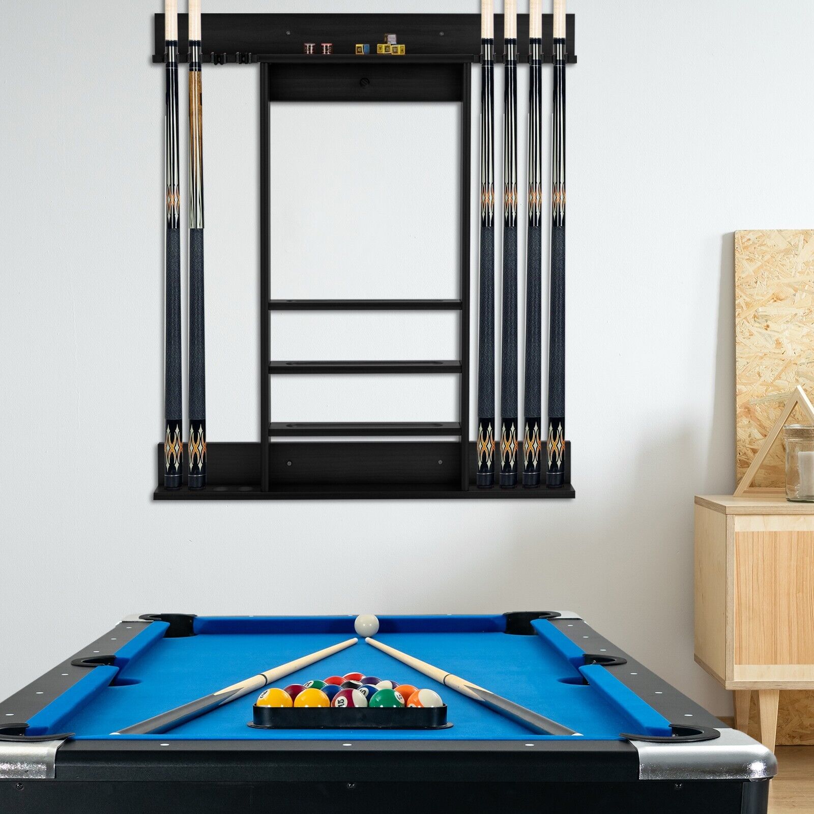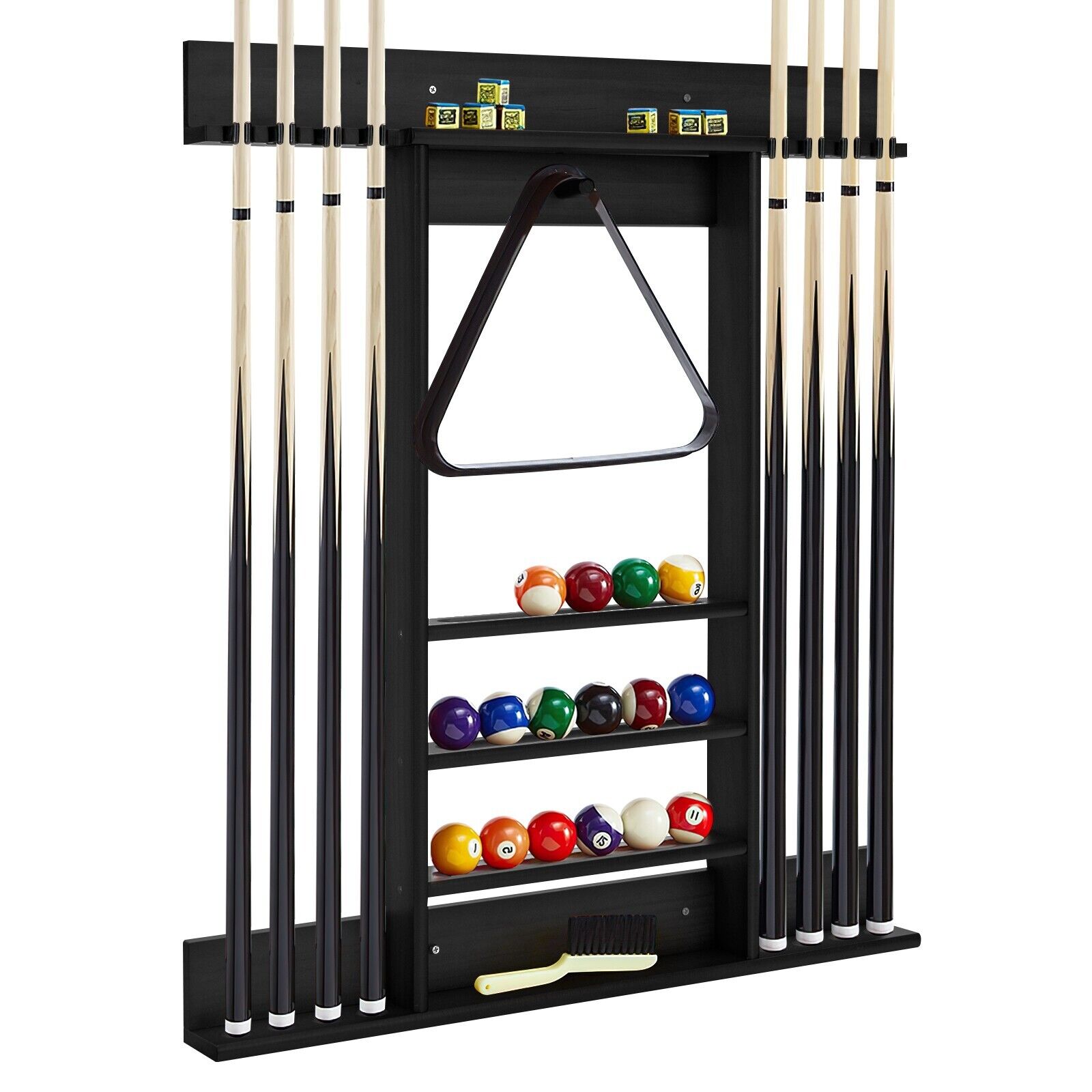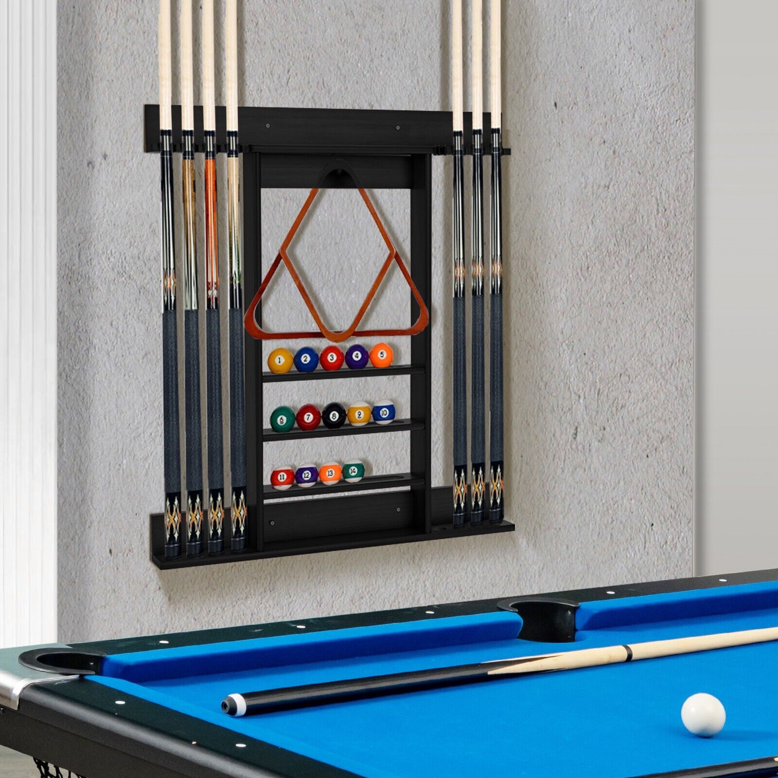 Billiards Pool Cue Rack Wall Mounted Billiard Stick Holder Made of Solid Pine