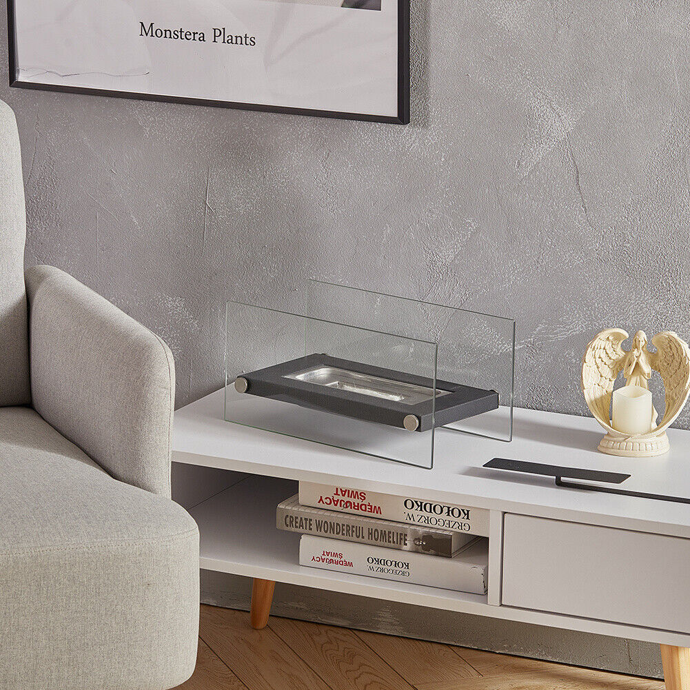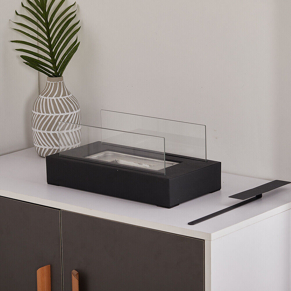 Bio Ethanol Fireplace Patio Heater Fire Pit In/Outdoor Table Glass Top Burner UK