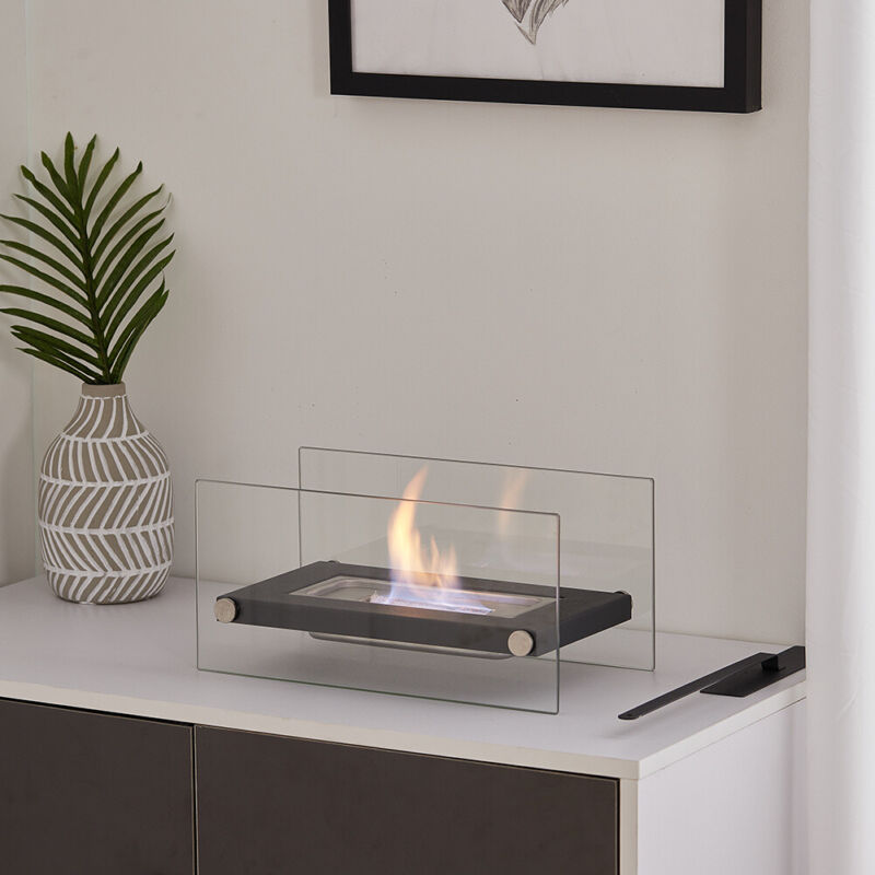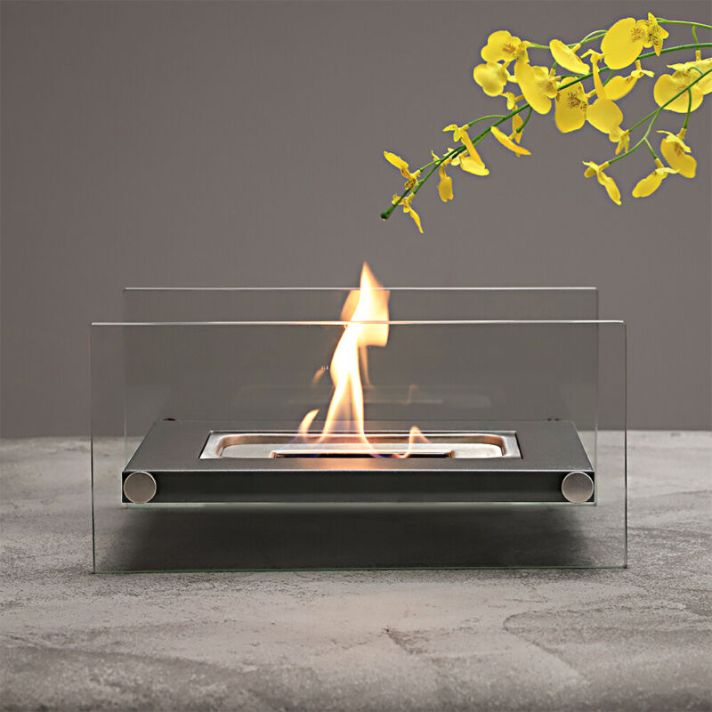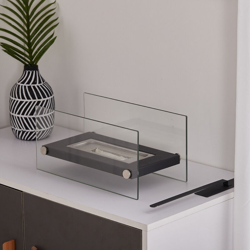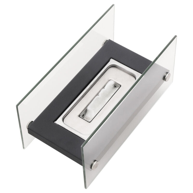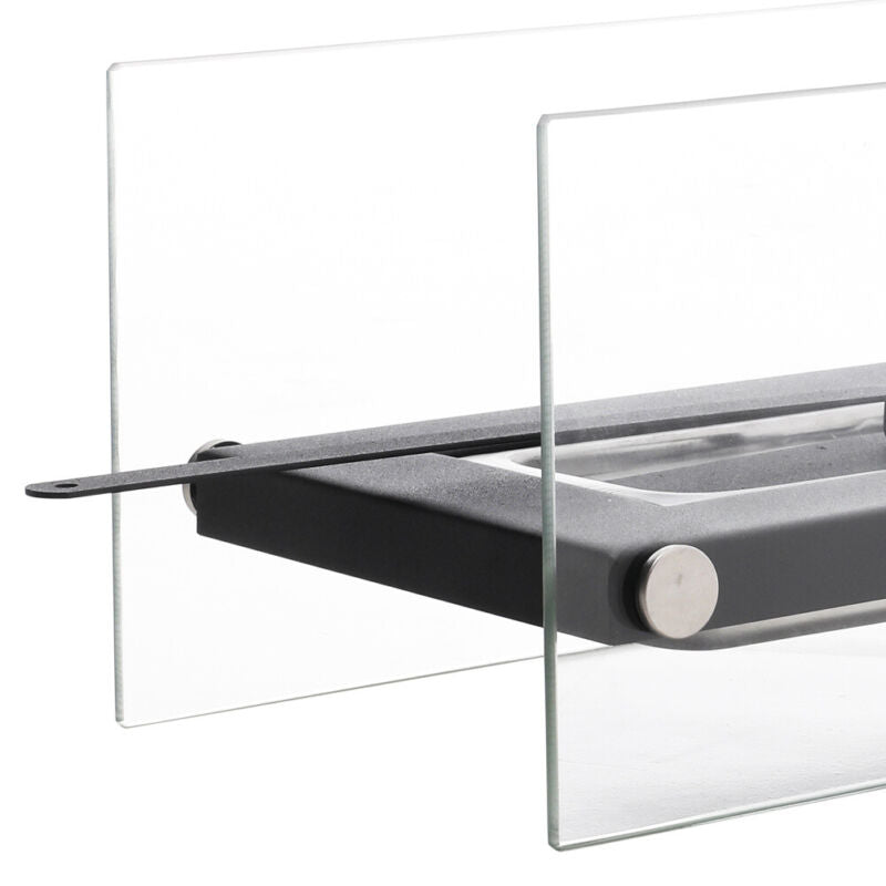 Bioethanol Fireplace Table Burner Bowl Steel & Glass Rectangle Fire Pit in Black