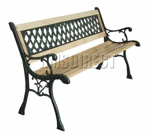 BIRCHTREE 3 Seater Outdoor Wooden Garden Bench Cast Iron Legs Park Seat Furnitur