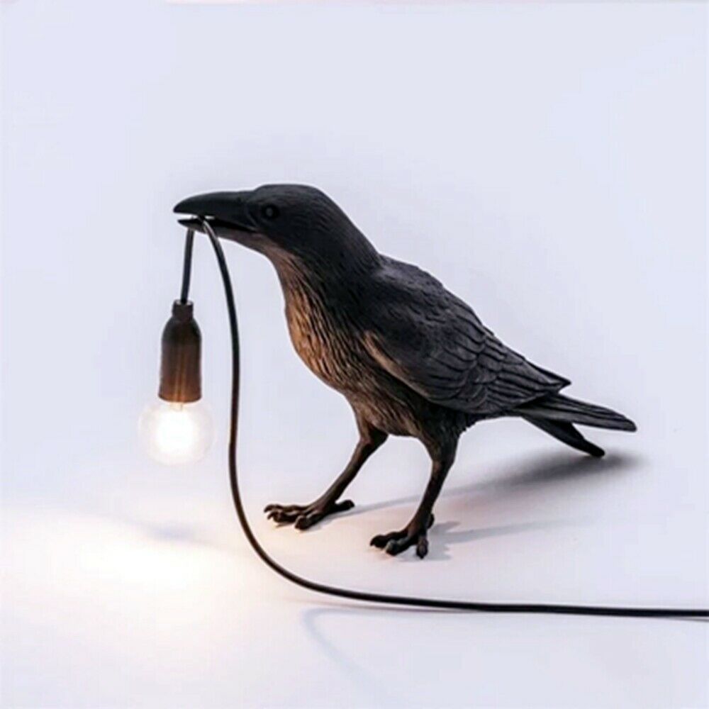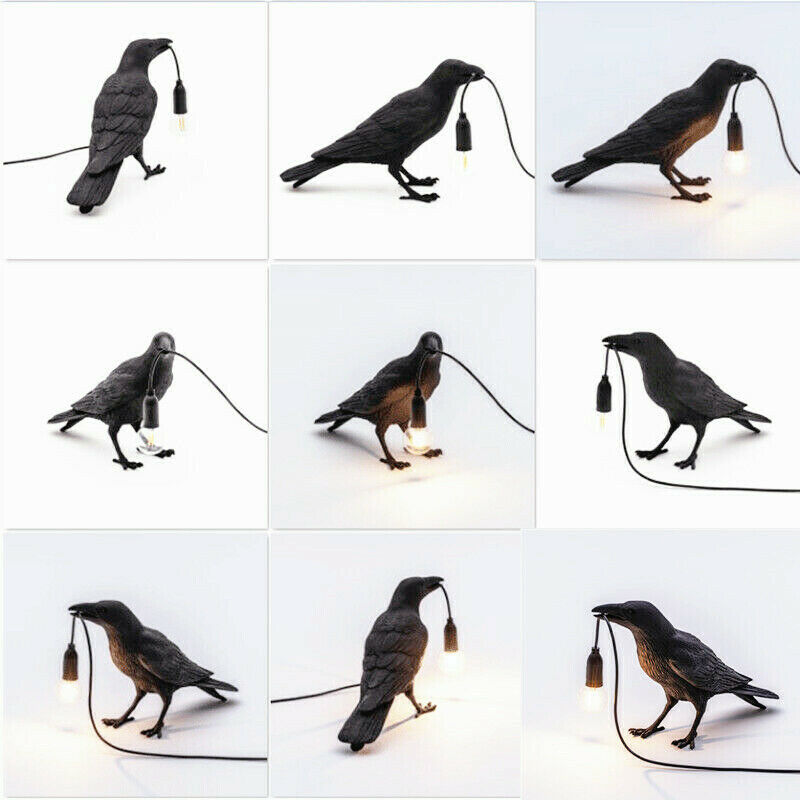 Bird Table Lamp Resin Crow Desk Lamps Bedroom Study Light Fixture Home Deco