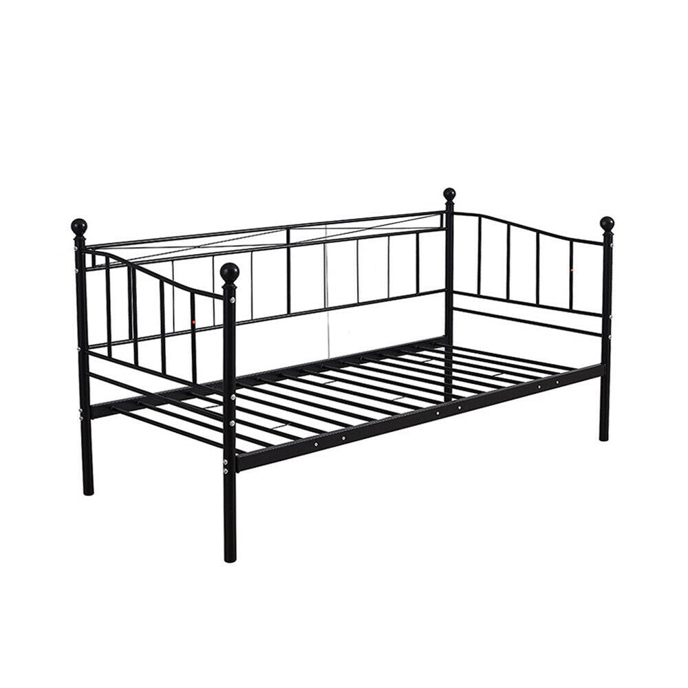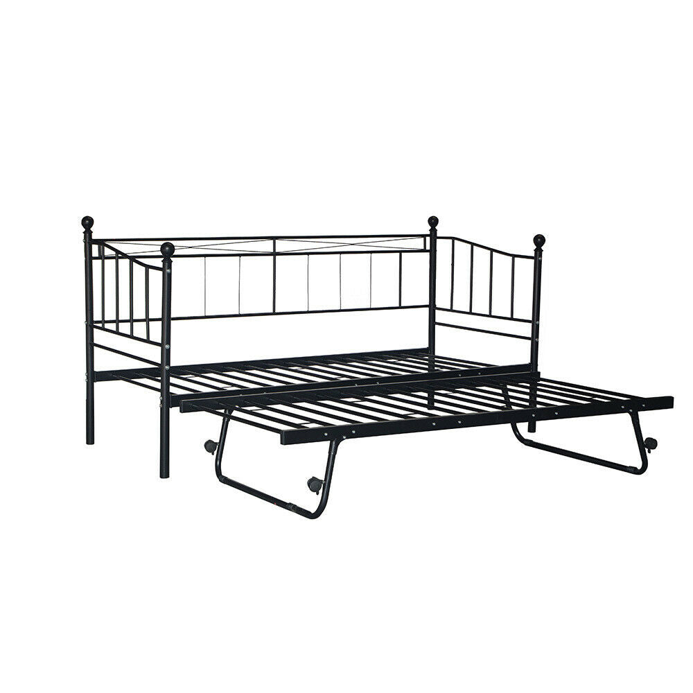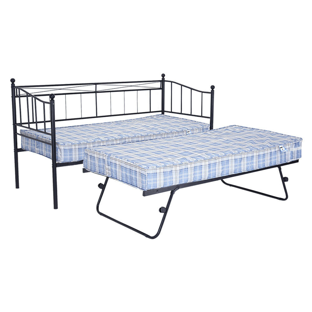 Black 3ft Single Metal Day Bed Sofabed with Pull Out Trundle Set