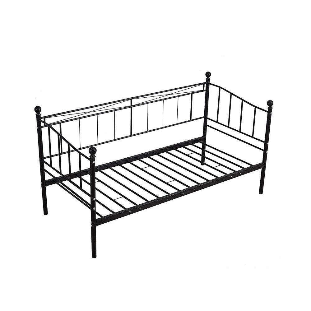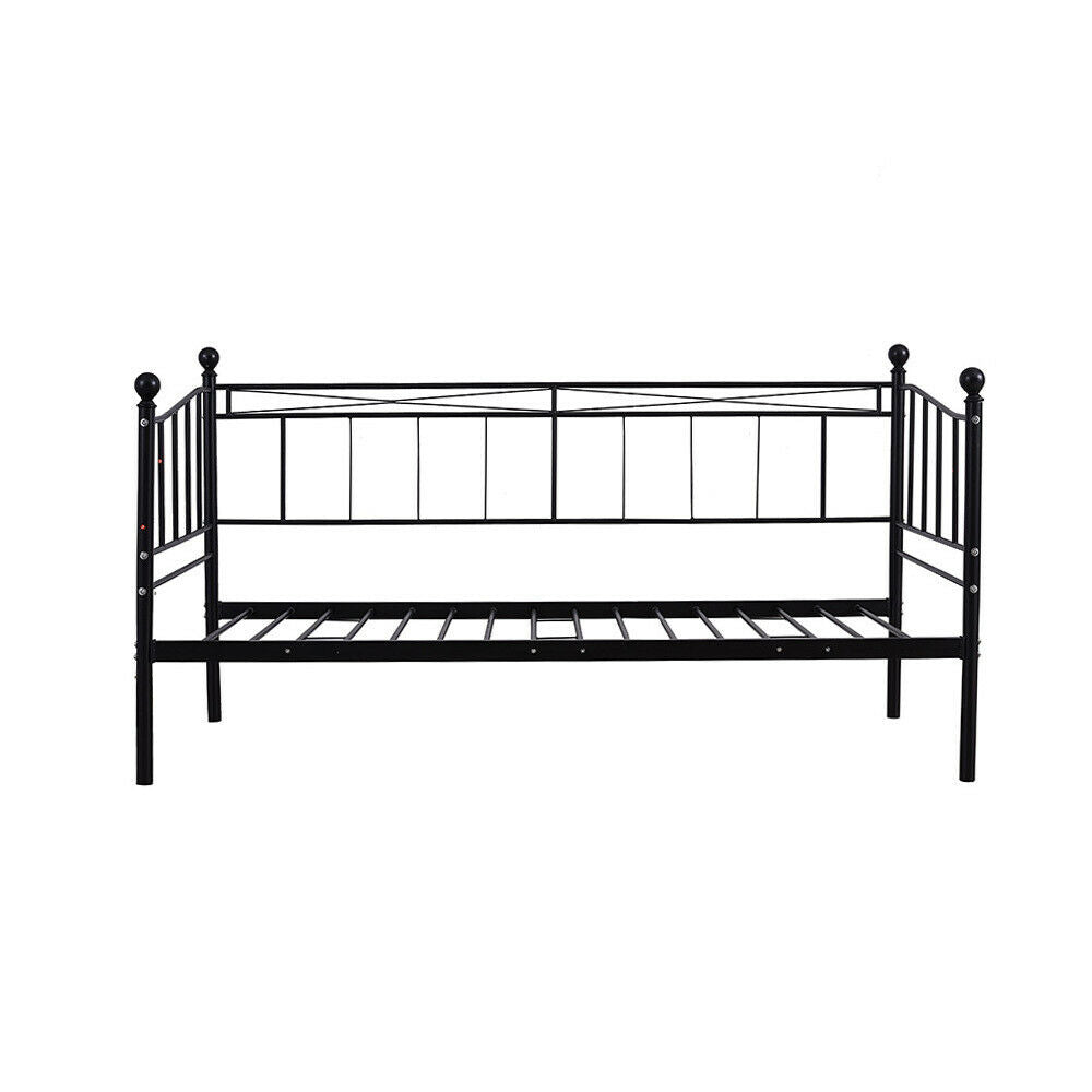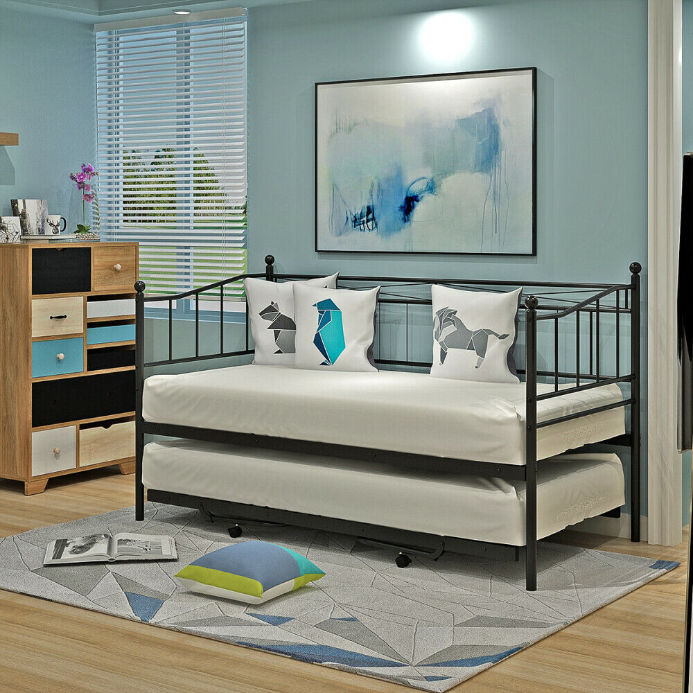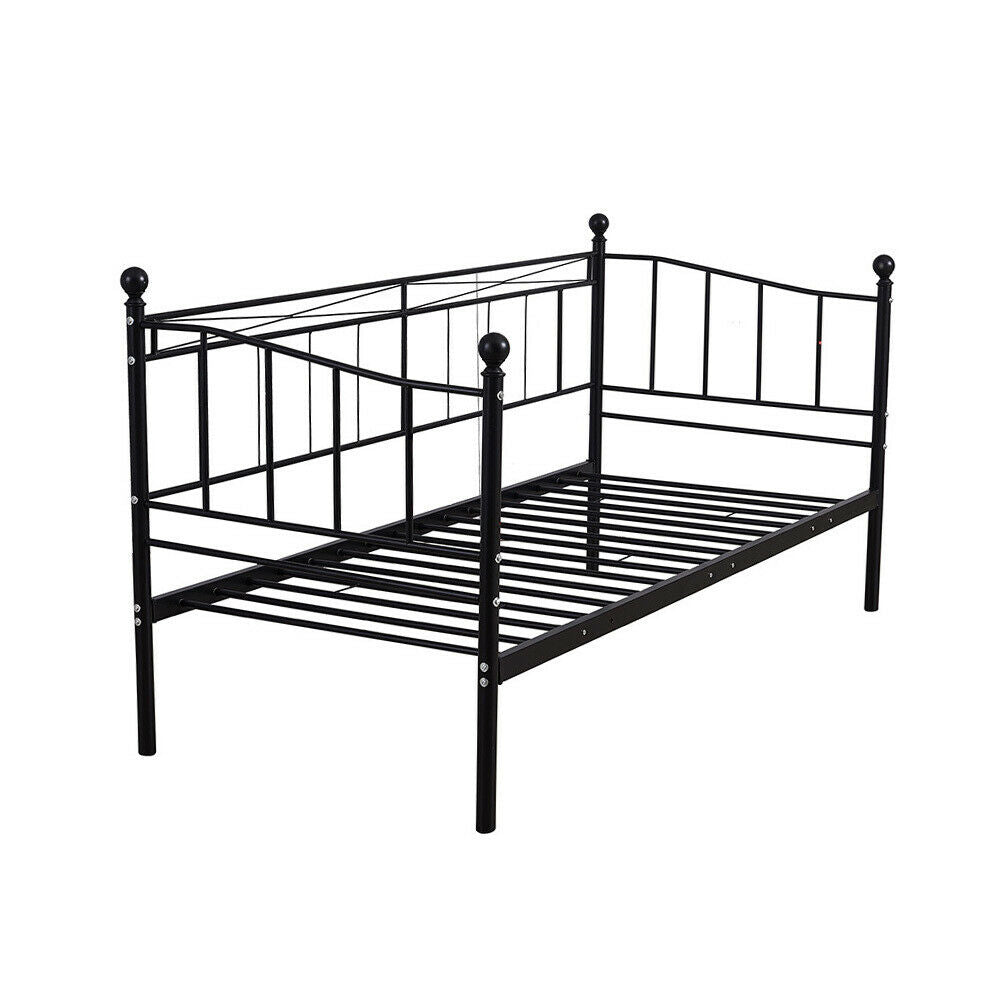 Black 3ft Single Metal Day Bed Sofabed with Pull Out Trundle Set