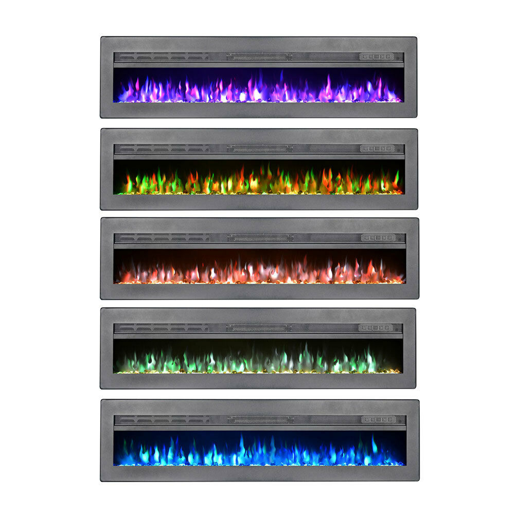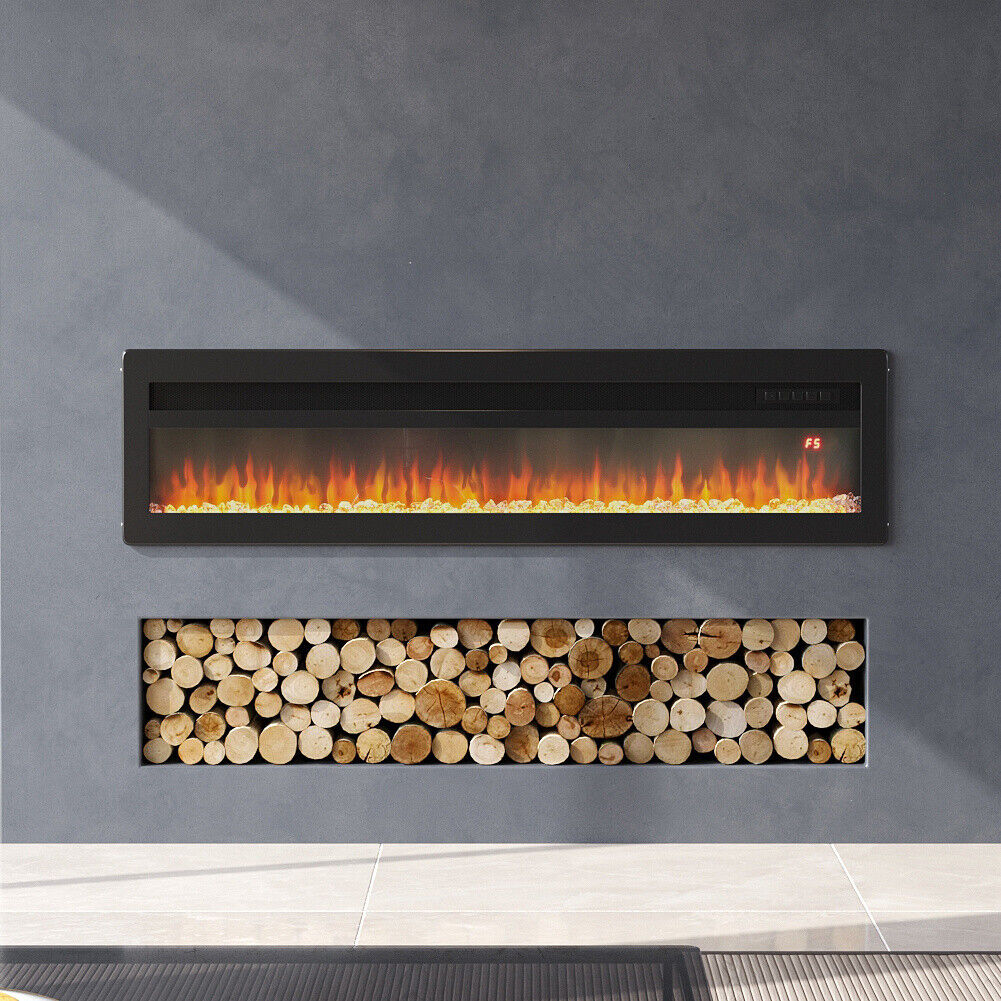 Black 50" Remote Electric Fireplace Insert/Wall LED Flame Wall Inset Into Fire
