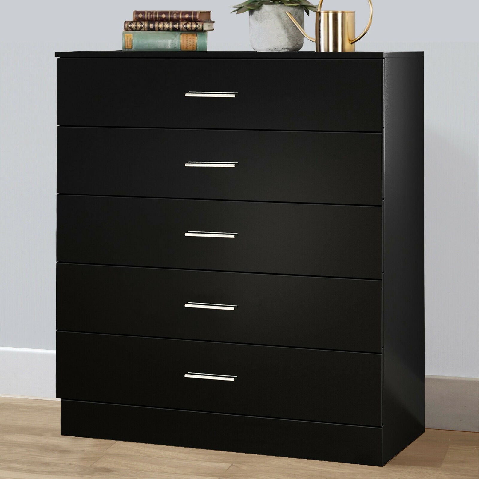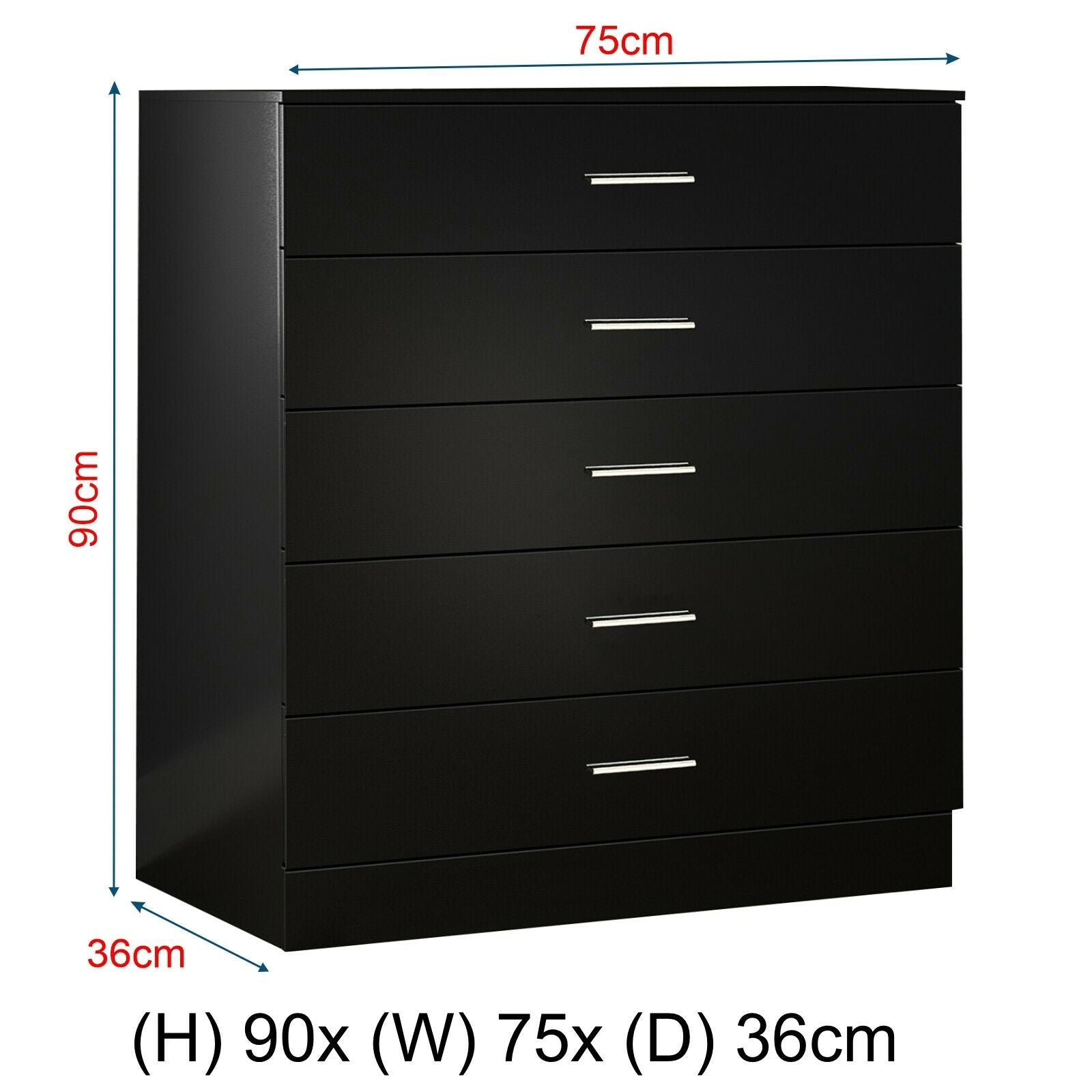 Black Chest of Drawer Bedside Table Cabinet 5 Drawer Bedroom Storage Furniture