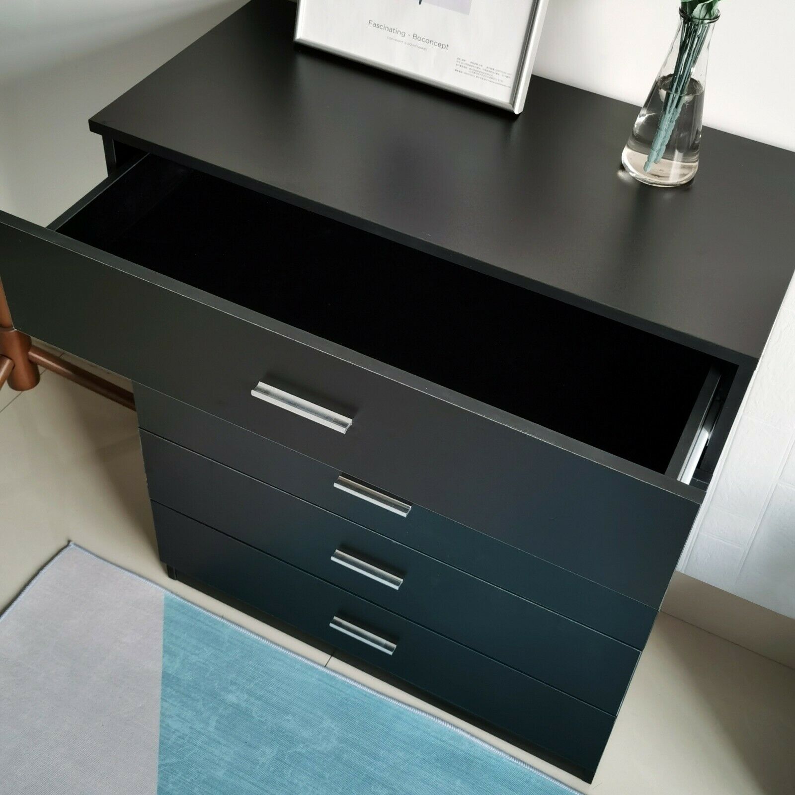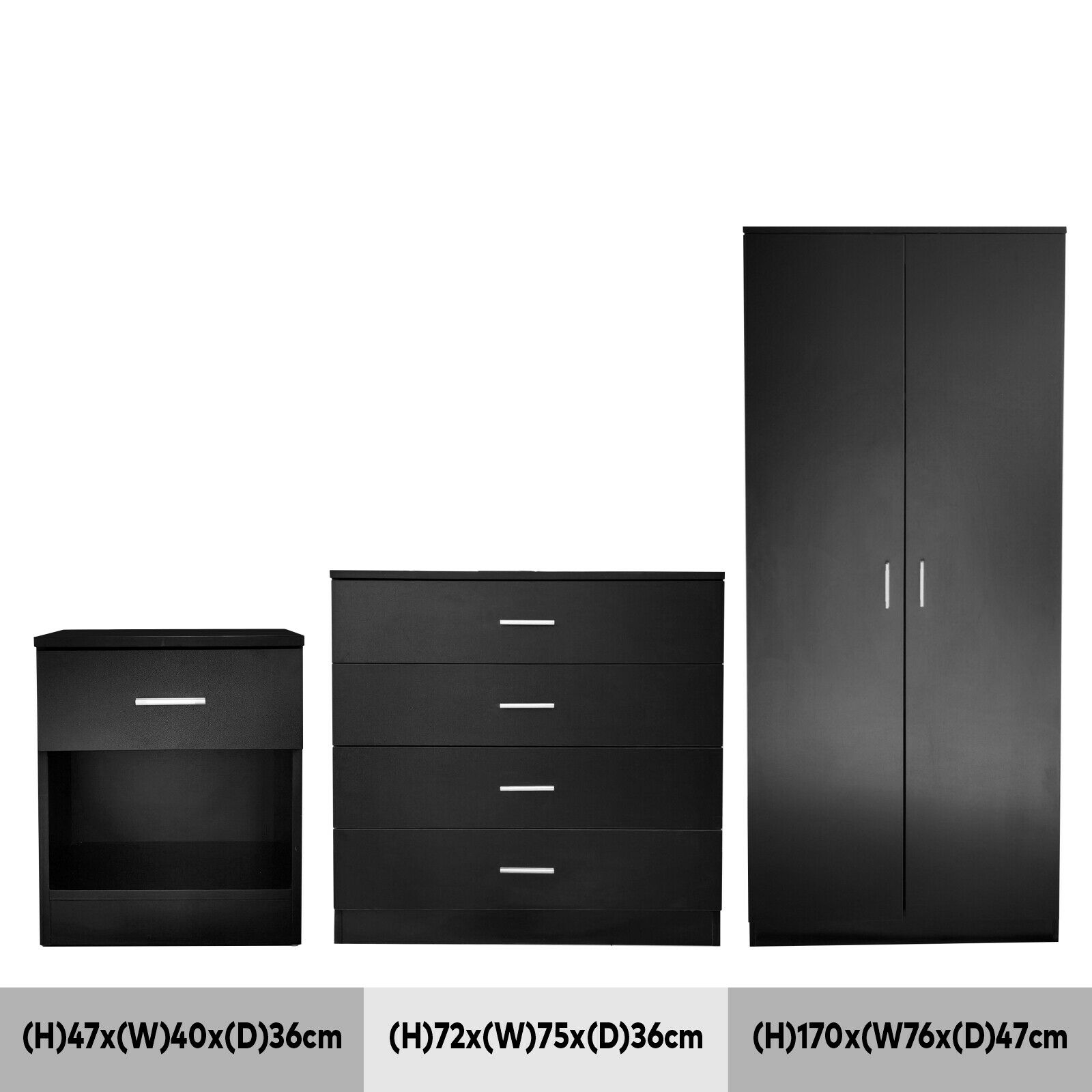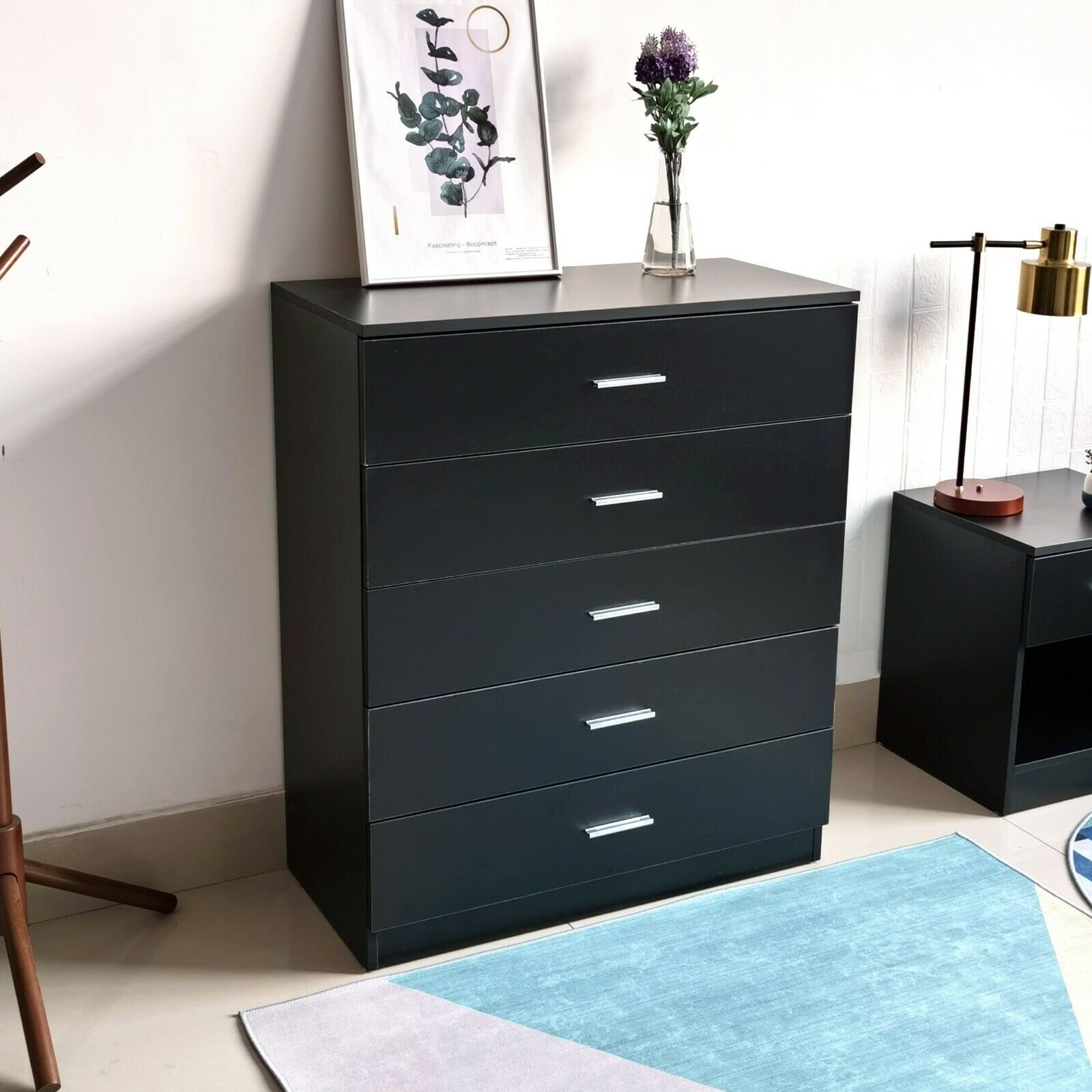 Black Chest of Drawers Bedside Table Cabinets 1 2 3 4 5 Drawer Bedroom Furniture