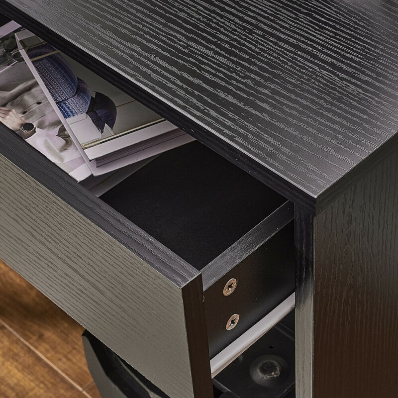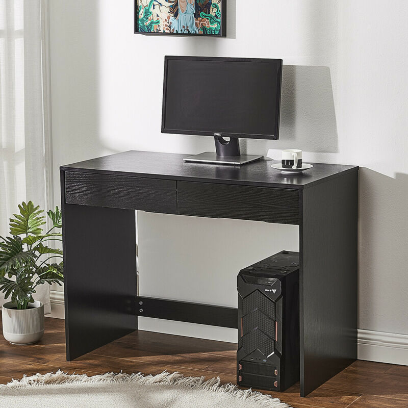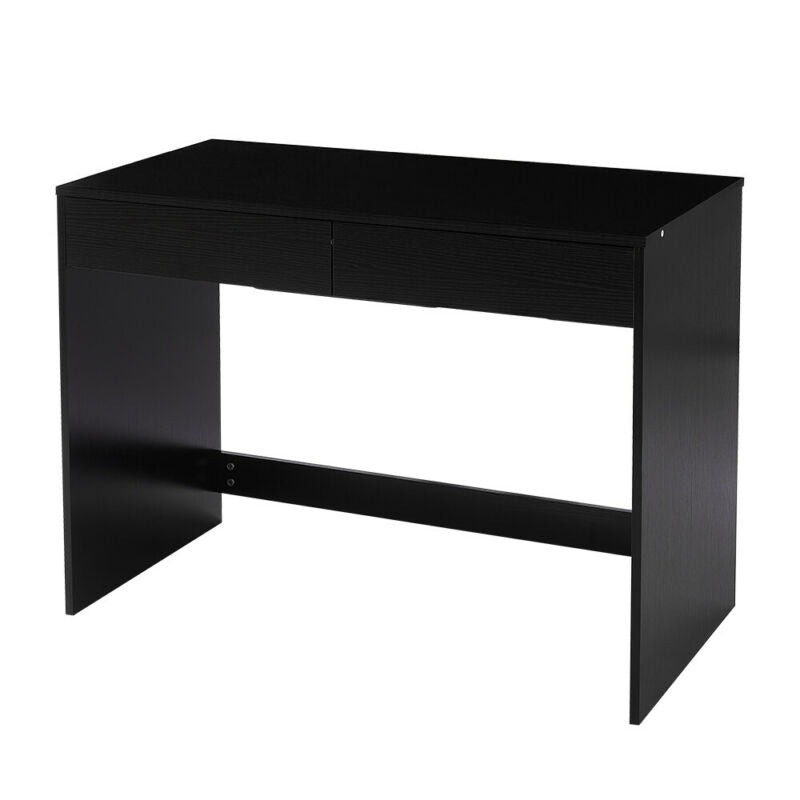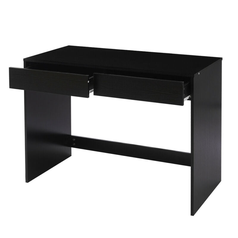 Black Computer Desk 2 Drawer Dressing Table Wooden Furniture Office 100cm - L
