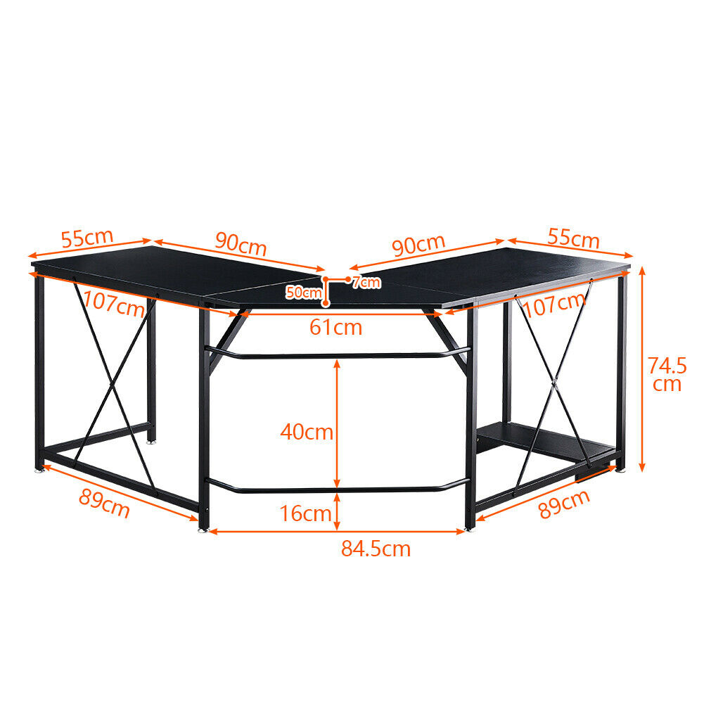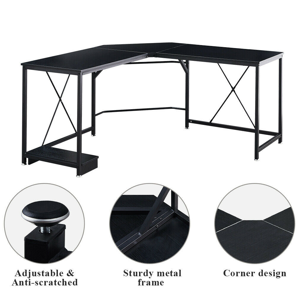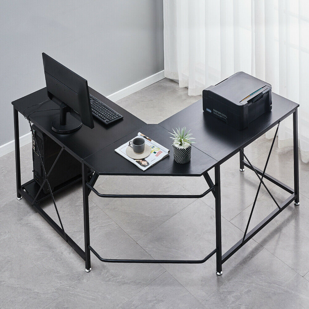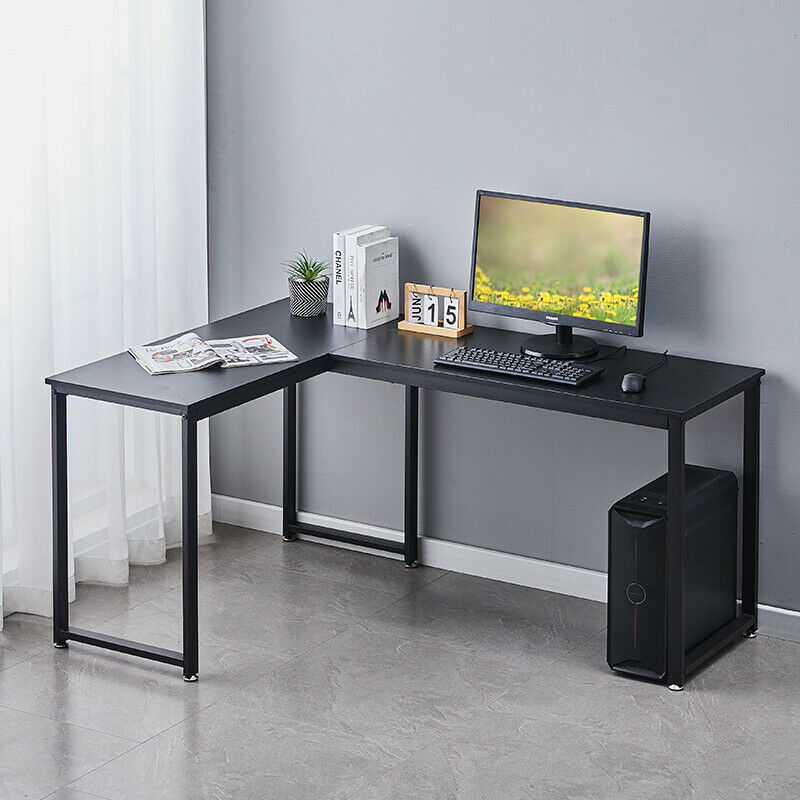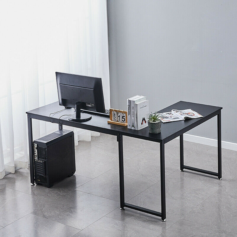 Black Computer Desk L Shape Home Office Desks Large PC Workstation Corner Table