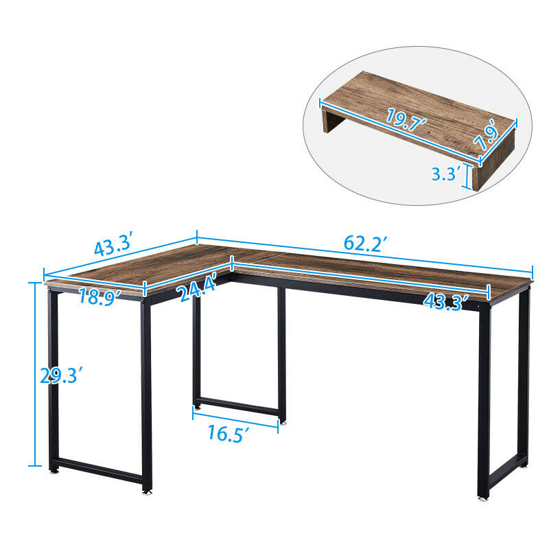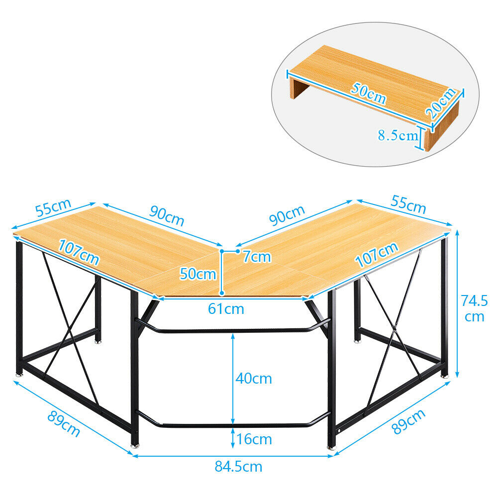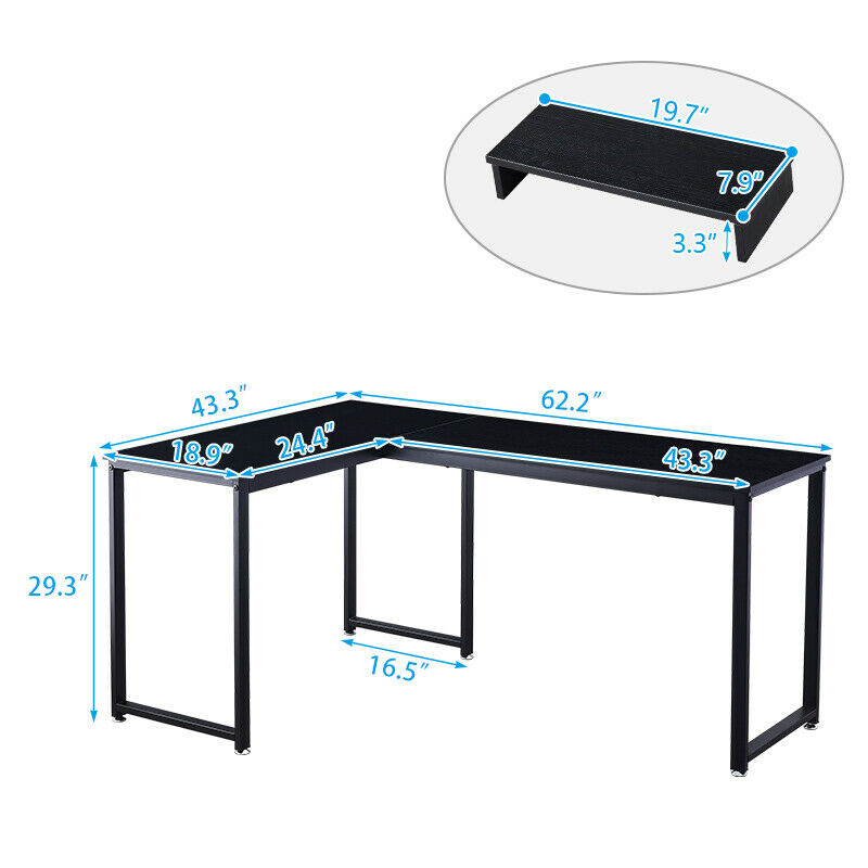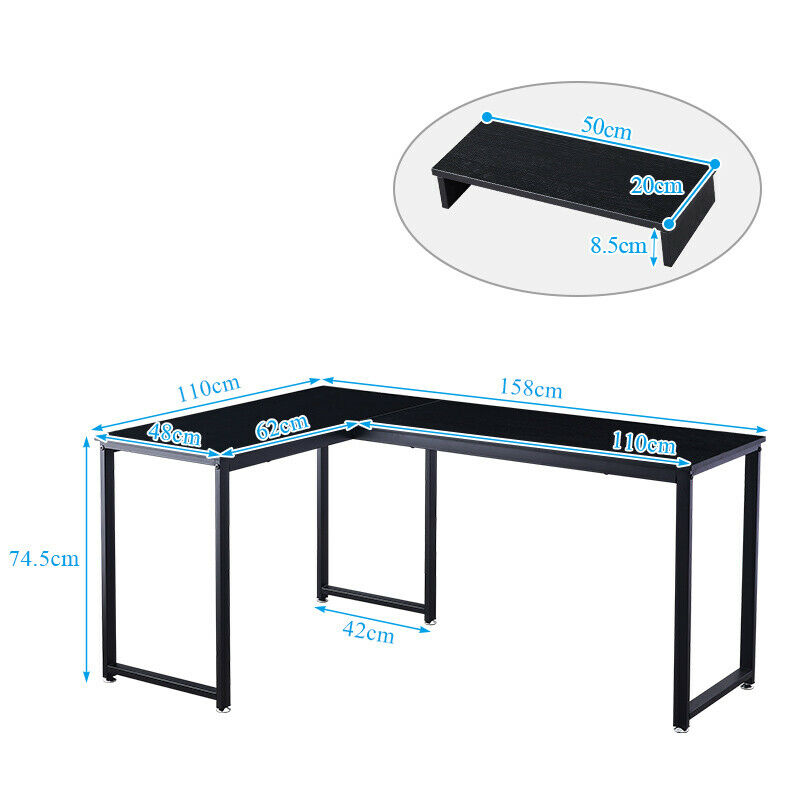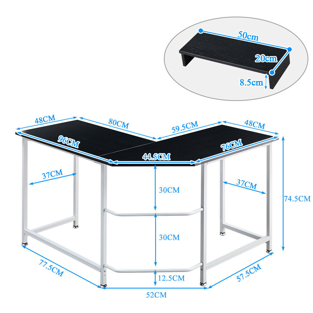Black Computer Desk L Shape Home Office Desks Large PC Workstation Corner Table