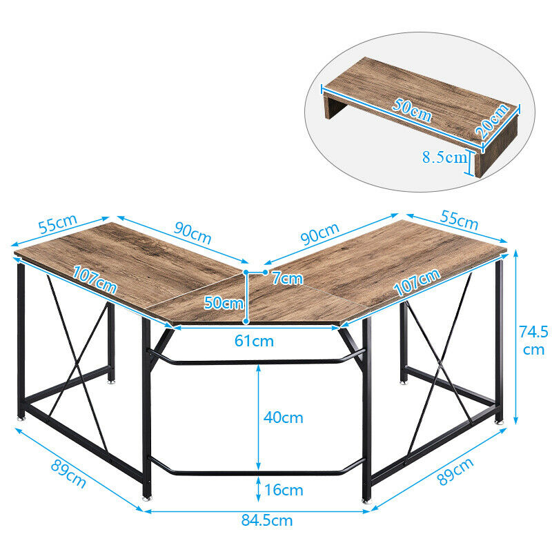 Corner Unit, Fixed, Flat Pack, Hidden Storage, With Monitor Stand, With Shelves