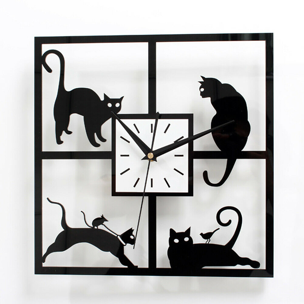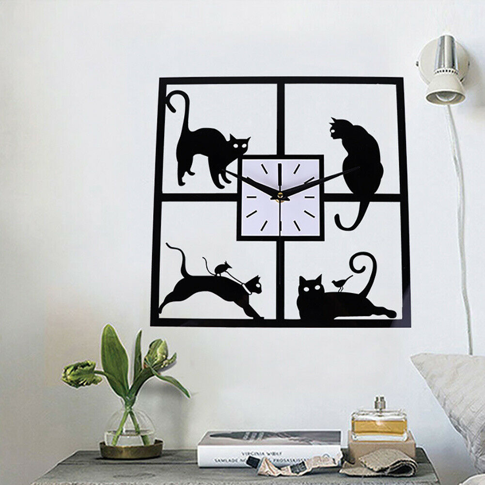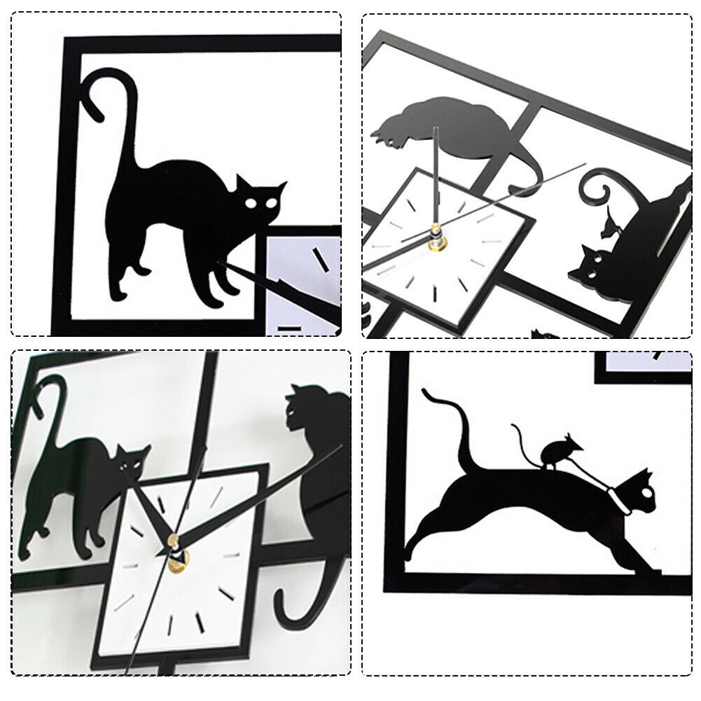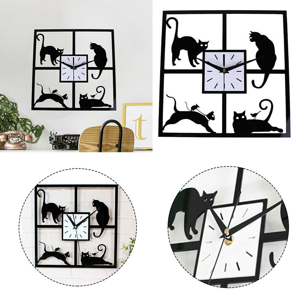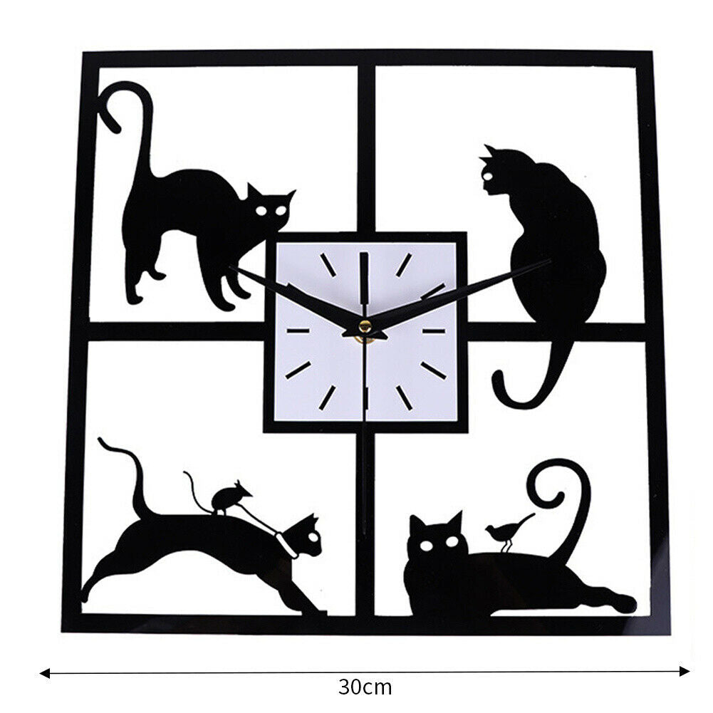 Black Cute Cat Quartz Living Room Bedroom Wall Clock Wall Mounted Decoration UK