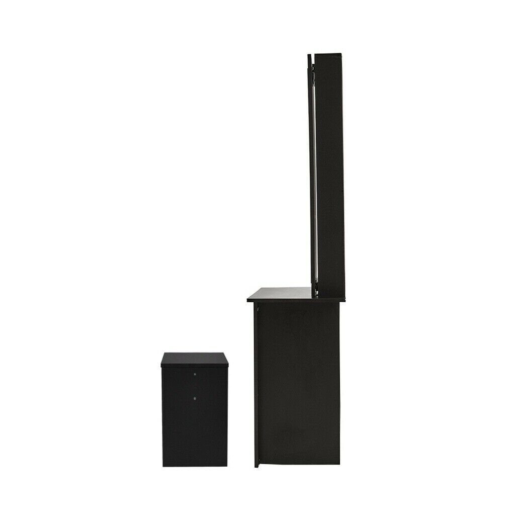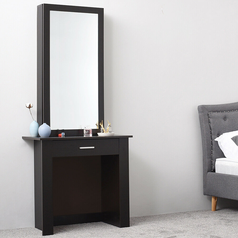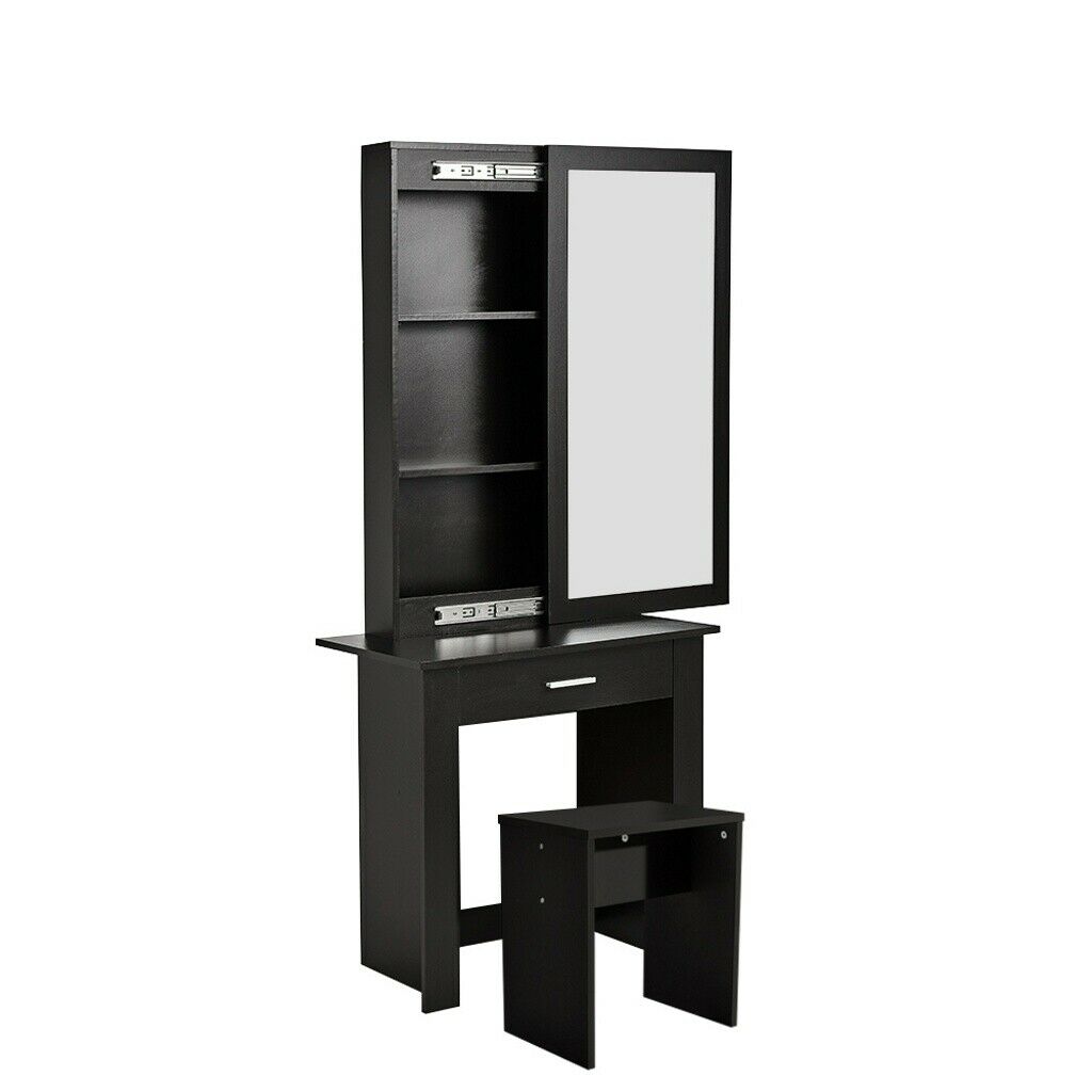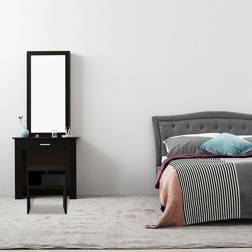 Black Dressing Table Make Up Desk Stool W/ Sliding Storage Mirror Drawer Vanity